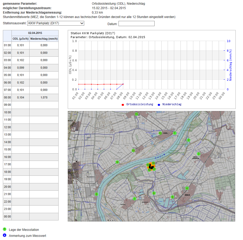 Für alle Interessierten hat das Hessische Landesamt für Umwelt und Geologie die Ergebnisse der Messstationen um das Kernkraftwerk Biblis ins Internet gestellt.