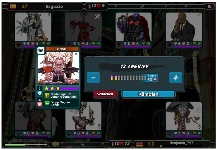 Die Duelle laufen in Echtzeit, wie man auch am Wartebalken auf dem oberen Screenshot erkennt, deshalb fehlen leider einige Screenshots zwischendrin, da ich nicht schneller screenshotten kann. :)