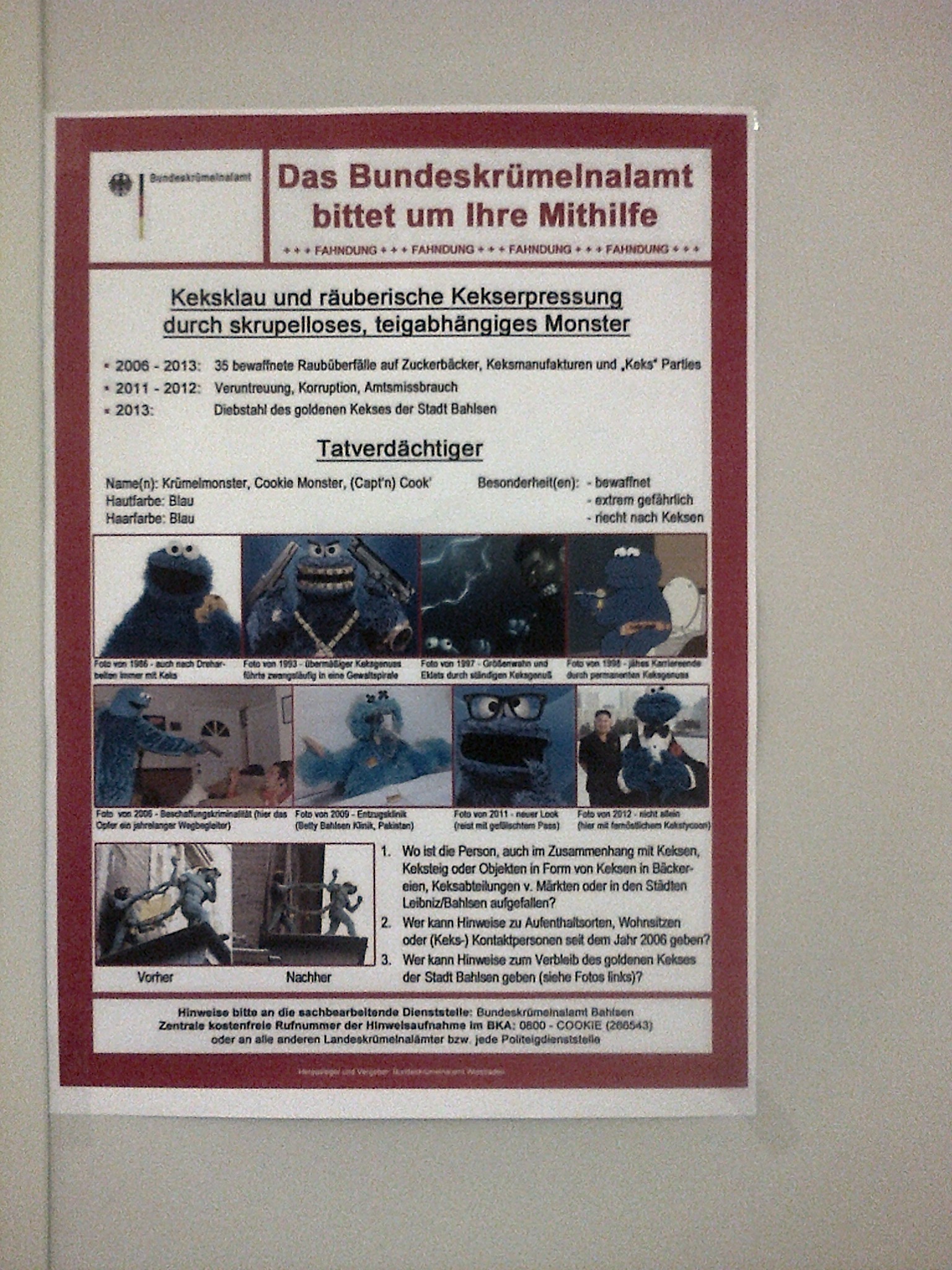 naja, erstmal ist ja ca. 17 tage lang keinem aufgefallen, daß der dämliche keks überhaupt weg war :D zumindest lag so viel zeit zwischen der letzten gesicherten sichtung und dem bemerken des verschwindens :fft