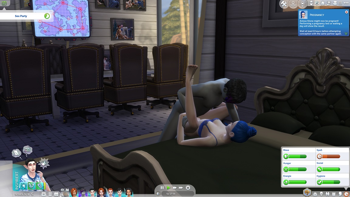 Ich verschiebe die Einstellung auf "Schwerpunkt: Swinger", um eher frische Paare zu erhalten. Er lässt sich von Annikas Schwester Anissa um eine zweite Runde bitten, bei der Lexi beispringt.