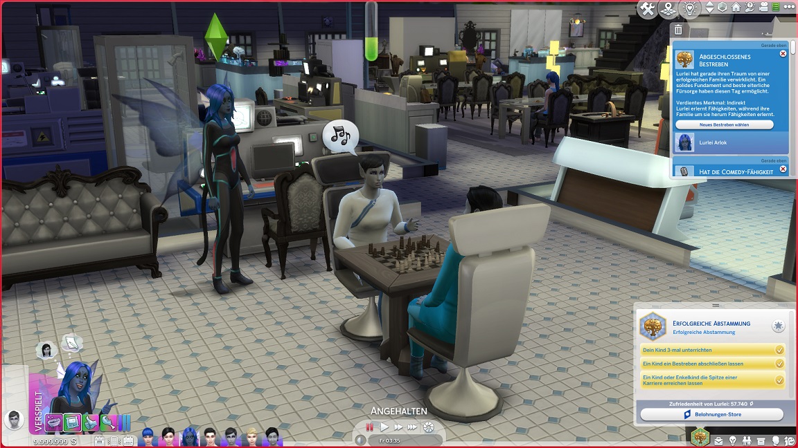 Um ihre Sozialfähigkeit aufzufrischen (und zugunsten ihrer Eltern, die bei Charisma nicht helfen können), spielen Nino und Nadil Schach. Lurlei jubelt.