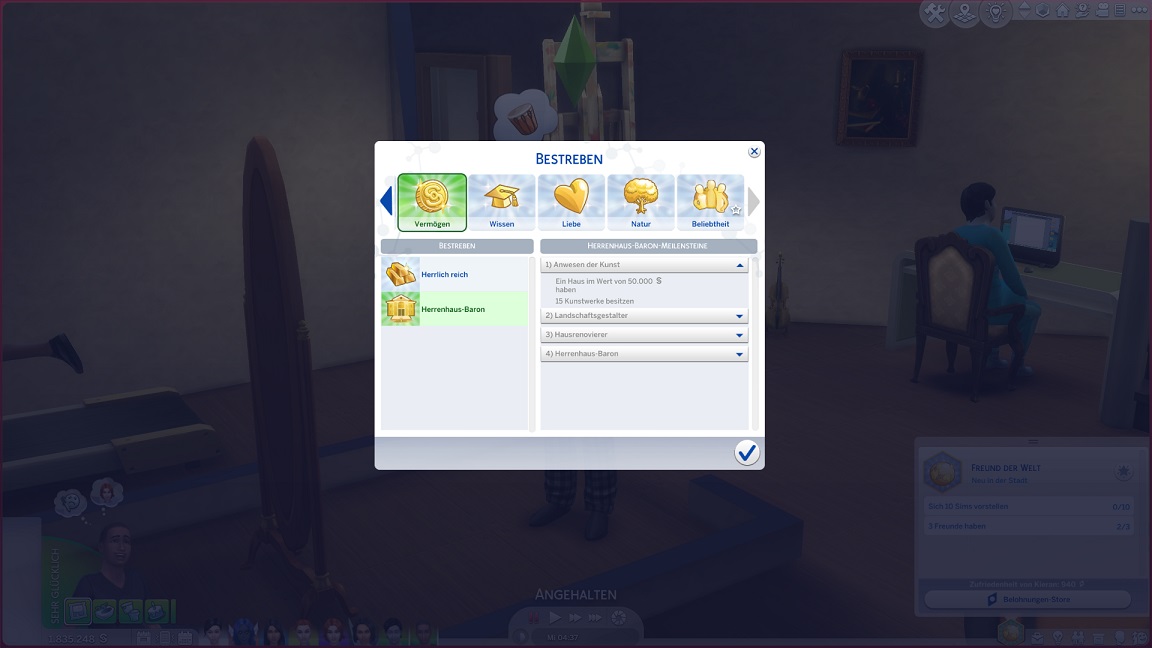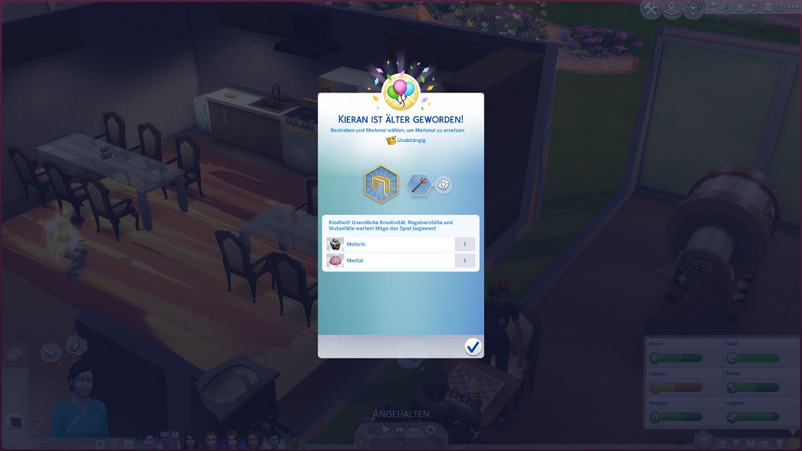 ... und fügt "Düster" seiner Auswahl hinzu, die er nach einem Würfelwurf um ein Sozialbestreben ergänzt.