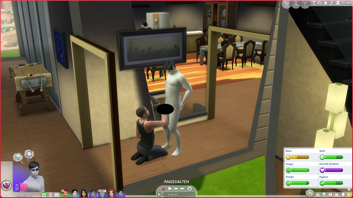 Ein neuer Nachbar lädt zu einem Besuch ein, wird jedoch ignoriert. Die Denkblasen verlangen von Renata einen eingerichteten Raum, den selbst drei Blumen und eine Vitrine an der Wand nicht erfüllen.