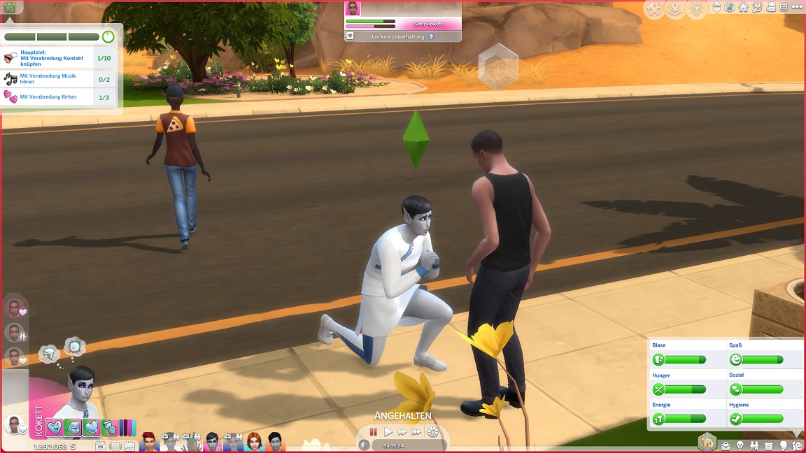 Die erste Verabredung geschieht nach dem "Ausrufen, abbrechen"-Muster. Bei der zweite geht Nadil auf die Knie.