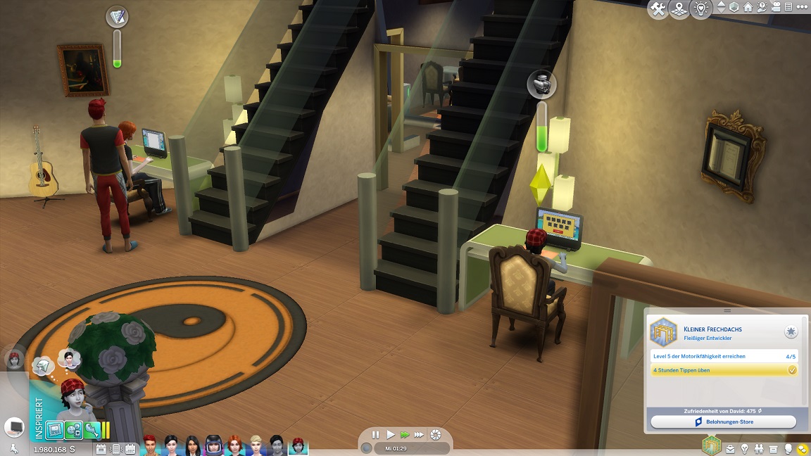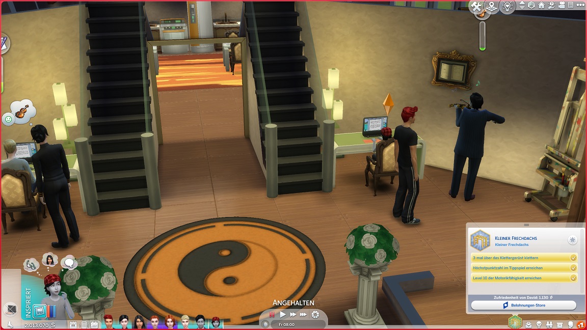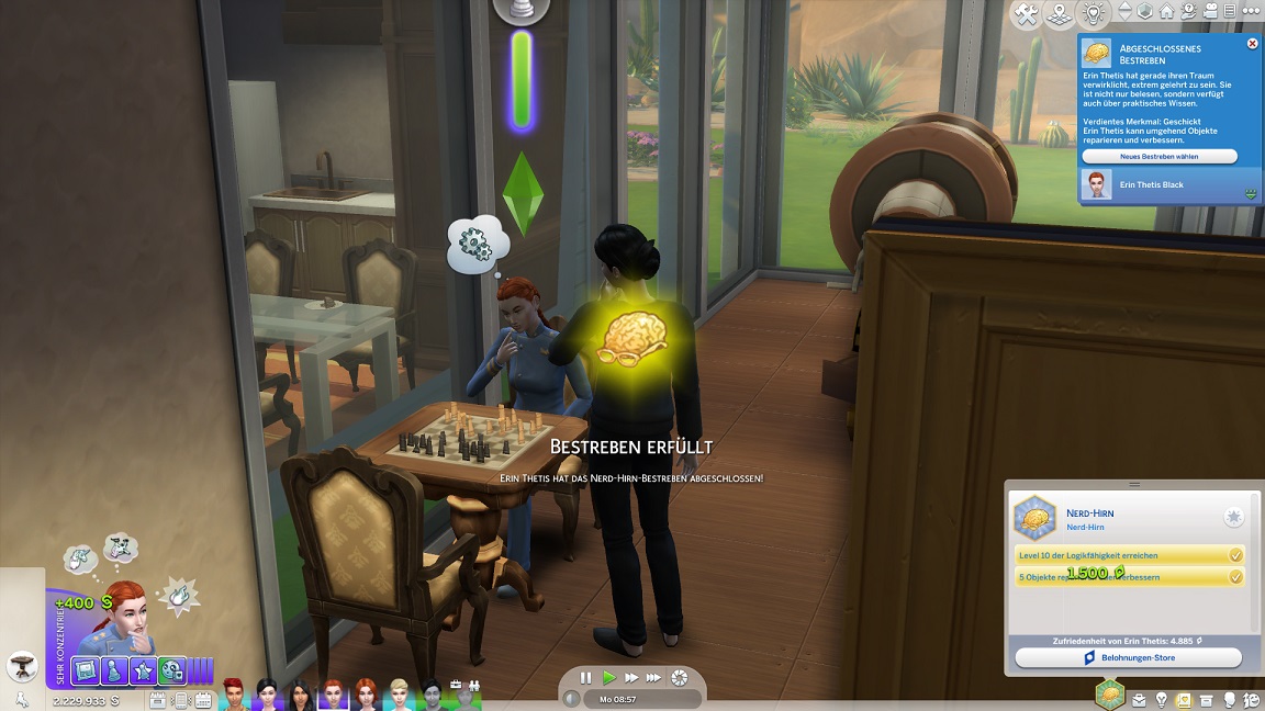 Sie besitzt bereits ihre zwanzig Freunde und muss nun nur noch Charisma pumpen. Derweil sitzen Erin und David beide an Logik - zusammen und mit jeweils einem Lehrer.