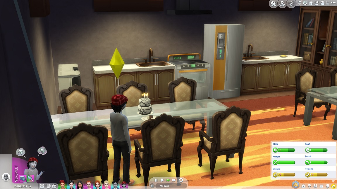 Der spielimmanente Würfel bestimmt außerdem, dass er keine Kinder mag.