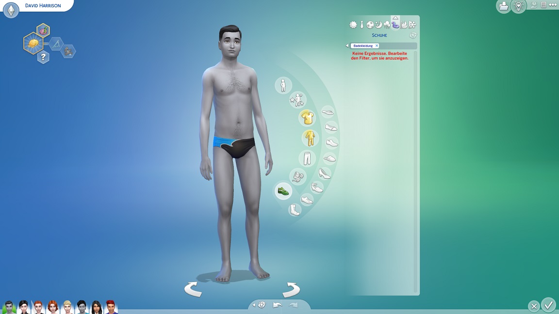 Bei der Schwimmkleidung biedert er sich ebenfalls bei den Zwillingen derselben Abteilung an.