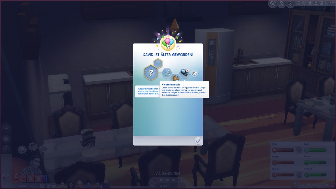Da schließt auch David sein Erwachsenenbestreben ab...