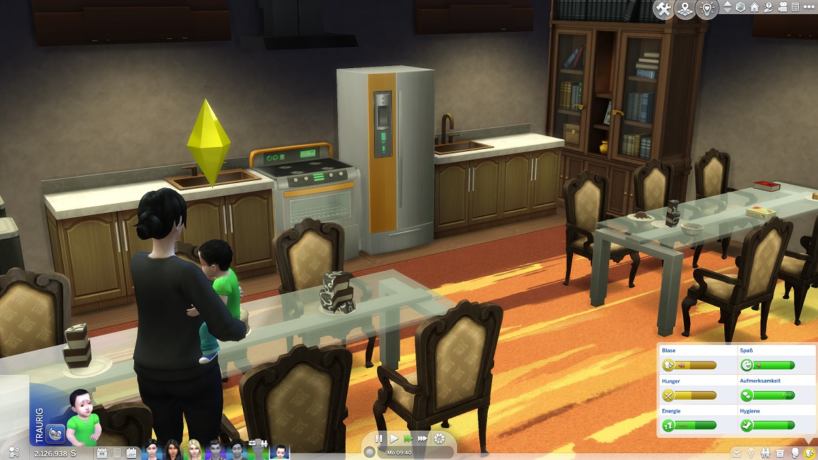 Da der Computerarbeitsplatz den Zugang zum Spiegel verbaut und ein solcher Spiegel ebenfalls beim Kinder-Charisma hilft, erfährt der Raum eine Rückkehr zum alten Design.