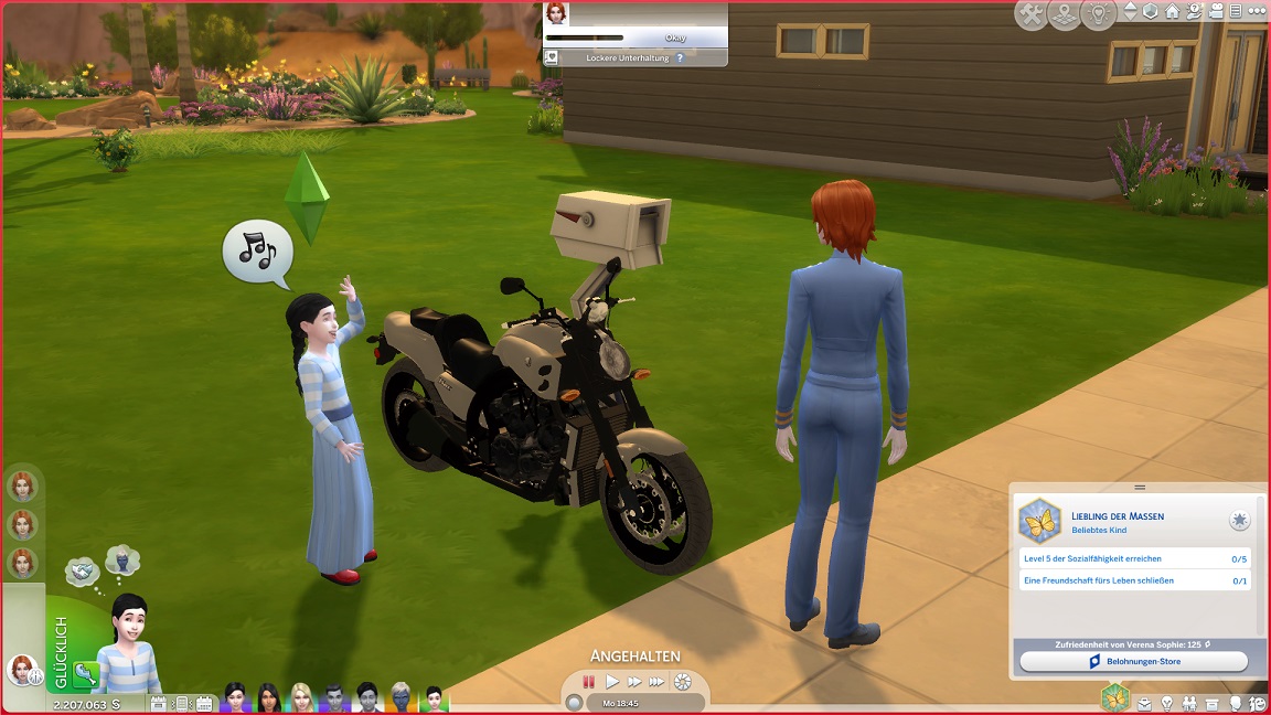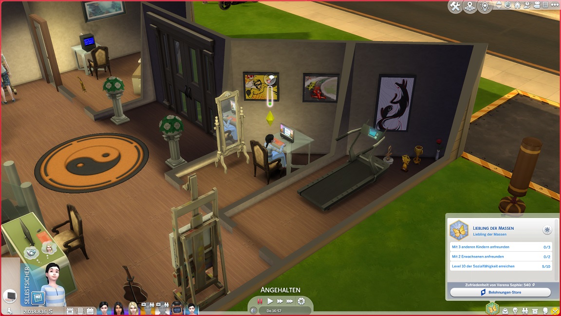 Verena benötigt derweil nur noch den Ausflug zum Klettergerüst, doch da die Gelegenheit dafür fehlt, greift sie schon einmal zur Kindergeige.