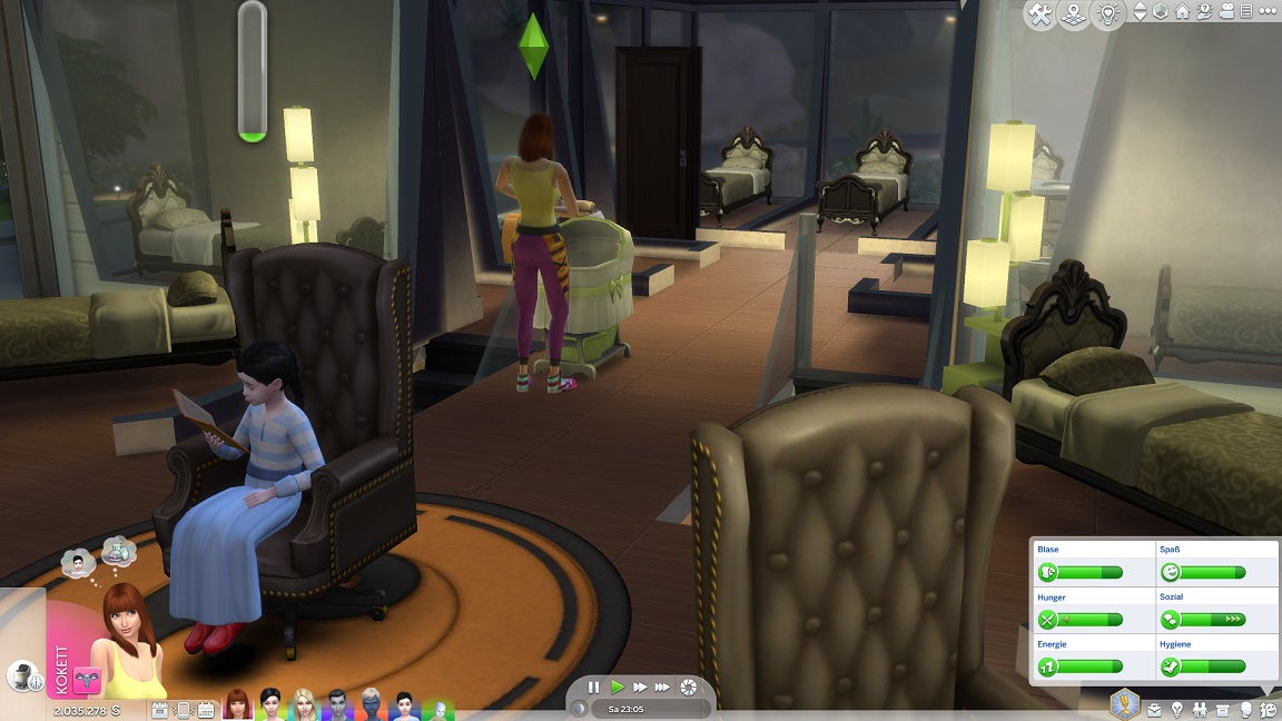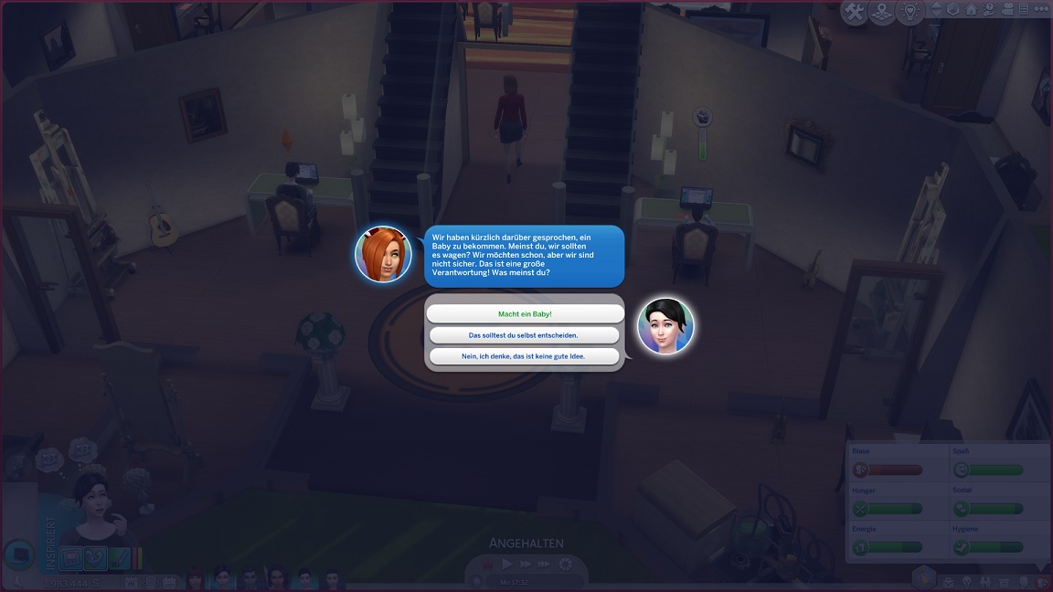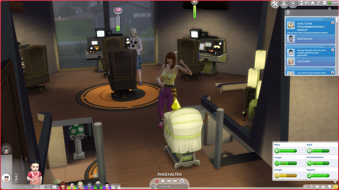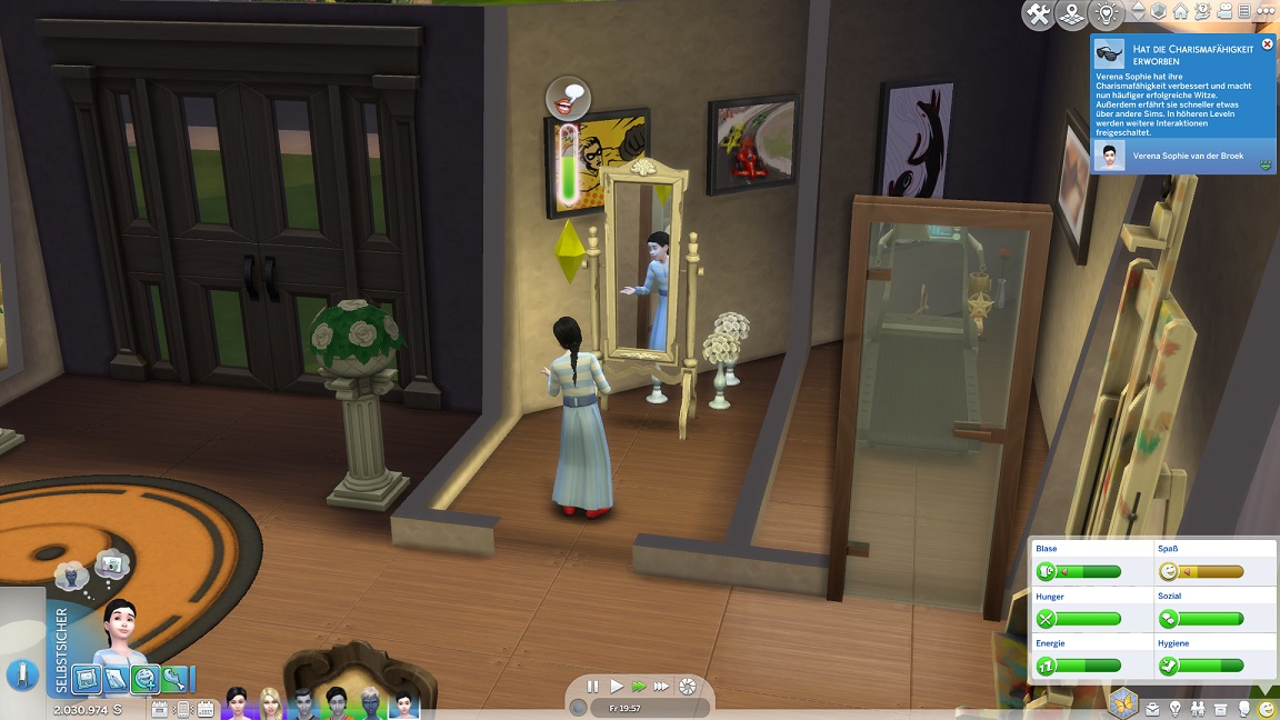 Für Verena vollzieht sich eine Umgestaltung: Sie erhält ein Terminal in den Charismaraum, damit sie mit Bonus ihre Sozialfähigkeit aufbauen kann. Der Spiegel weicht einem wertetechnisch identischen, designtechnisch besser passenden Modell.