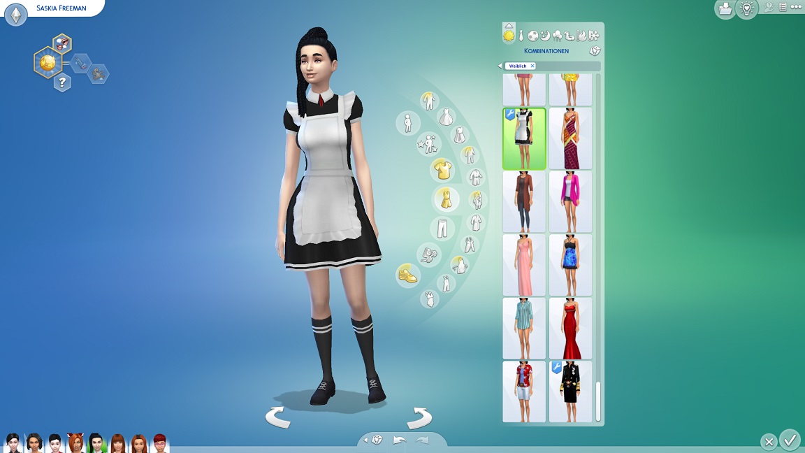 Wie ihre Mutter trägt sie die Uniform von Ninua als Kostüm.