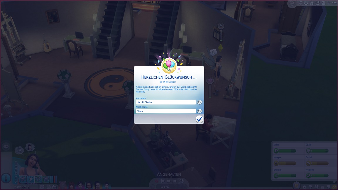 ... und es entsteht ein Junge. Sie denkt an Palitas Partner Harry Sanders und heißt Harold Cheiron Black willkommen. (Dies lässt vermuten, dass das Ergebnis einer Schwangerschaft erst mit der Geburt bestimmt wird. Zum Zeitpunkt der Zeugung hätte im Haushalt der Platz für zwei Kinder gefehlt.)