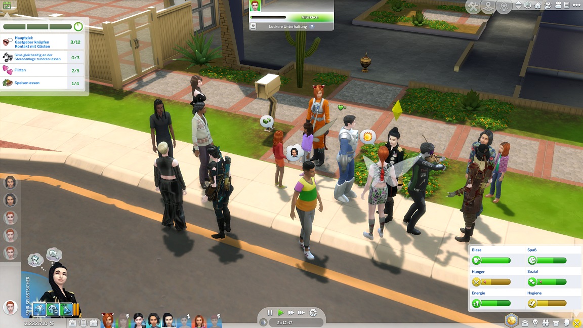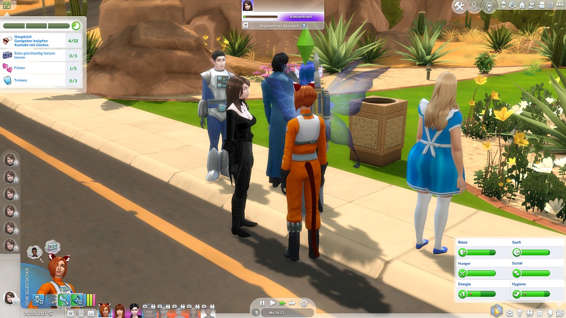 Saskia muss an verschiedenen Orten Leute kennen lernen, Mizuko an verschiedenen Orten Feste veranstalten. Dies lässt sich kombinieren.