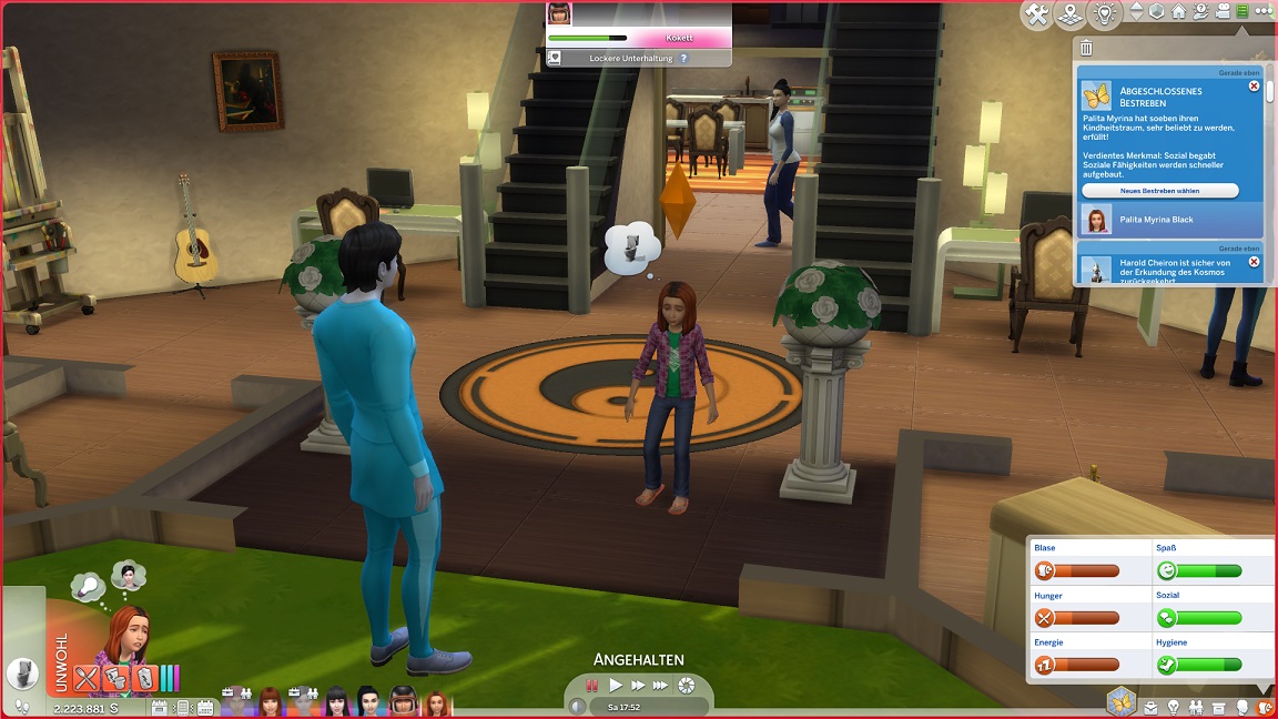 Zwei mindere negative Eigenarten werden nicht bejubelt, aber geduldet. Trotzdem sieht sie sich gezwungen, auf ihren Wert hinzuweisen, und schreibt sich ebenfalls für die Technikerbestrebung ein.