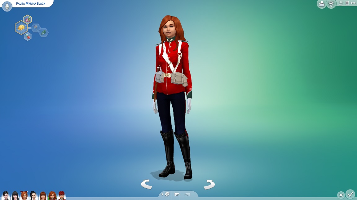 Sie trägt die Galauniform ihrer Eltern, die sie als Vega-Menschen auszeichnet.