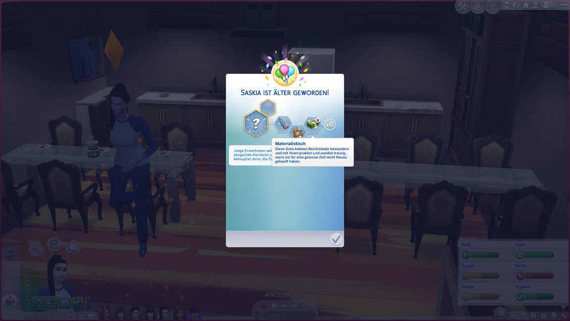 Nadine stellt fest, dass ihr Mixen nicht liegt. Der Charisma-Boost durch die Feier genügt, um Verenas Bestreben zu erfüllen.