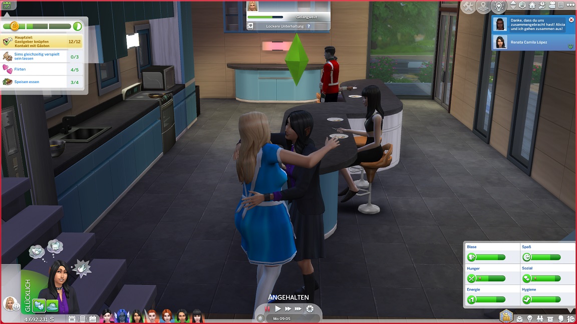 Da startet direkt die erste Party, wobei vorwiegend Externe eingeladen wurden, bei denen ein nahegelegter Jobwechsel nicht ins Gewicht fällt. Renata verkuppelt Blaidan mit ihrer Schwester.