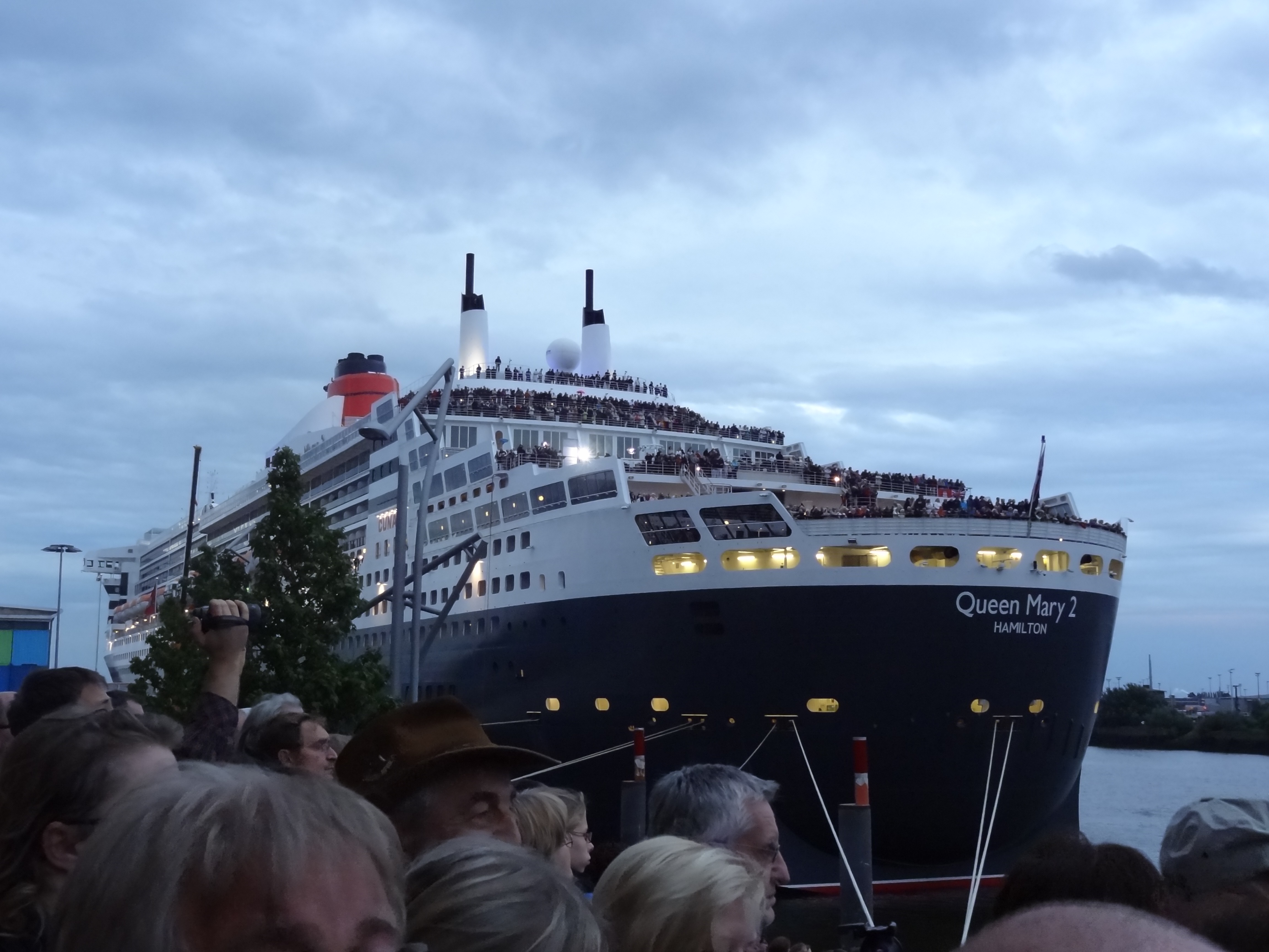 Die Queen Elizabeth Zwo und die Queen Mary Zwo im Hamburger Hafen.