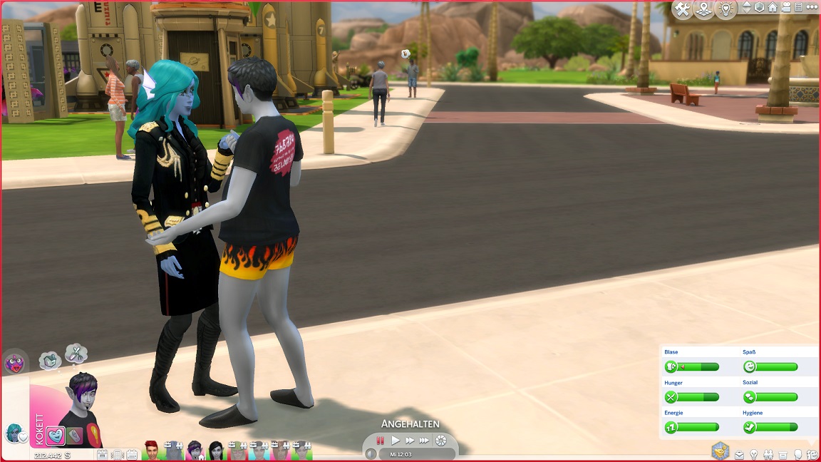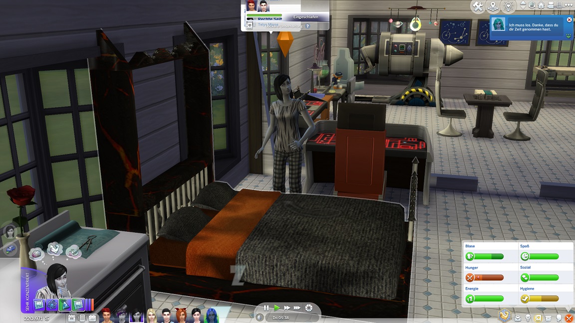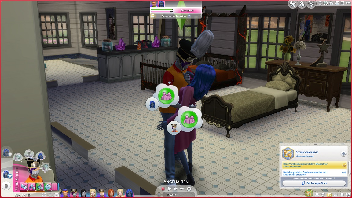 Erinnert ihr euch daran, dass James sein Date mit Rena bei ihr zuhause stattfinden ließ? Das Spiel schien in jener Zeit hinsichtlich der PopUps anzunehmen, dass nun der Tannhuber-Haushalt (ohne Tannhubers) bespielt werden würde. Das brachte KI-Telys dazu, James zu fragen, ob sie sich mit Andromeda verloben sollte... und während Telys durch Martins Tod zur Witwe gemacht wurde, ist Andromeda immer noch mit dem lebenden Jack verheiratet.
