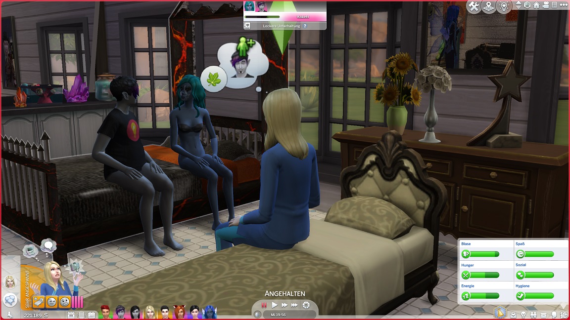 Als sie enden, sucht nur Andromeda das Bett auf, der Rest verschwindet nach oben zu einer zweiten Runde - und dort stößt auch Lisa dazu.