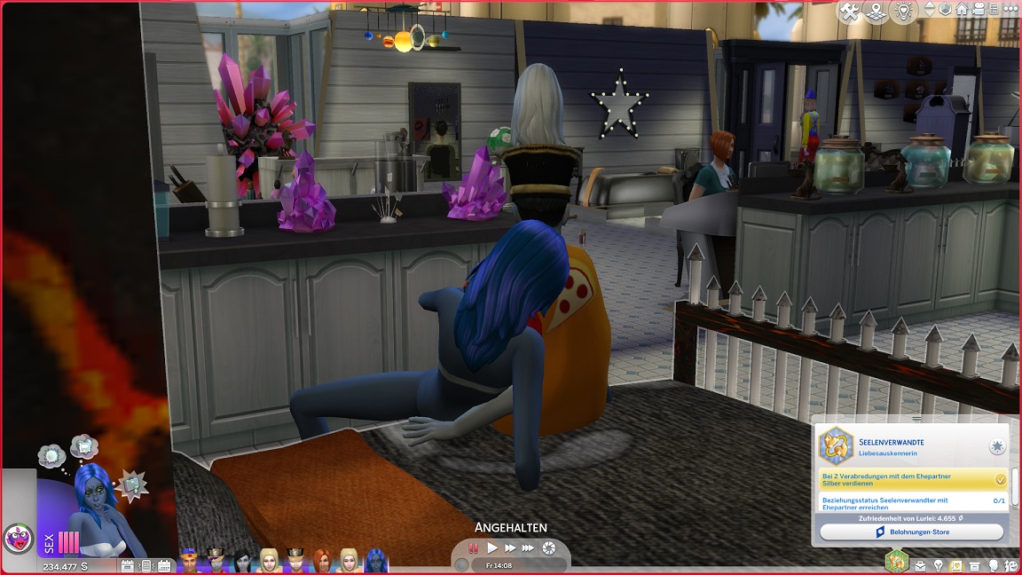 Jack und Andromeda stürmen nach oben, um durch die Aura noch kokett zu werden. Sie zielen dabei das Sofa im Inneren Heiligtum an und hoffen, dass sich Lisa und Lurlei nicht daran stören. Jack möchte tatsächlich noch bei ihnen einsteigen, kommt aber zu spät.