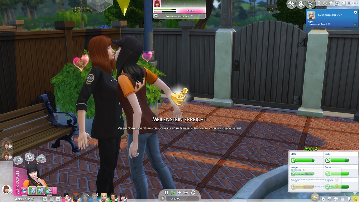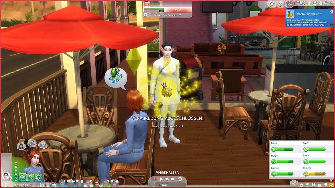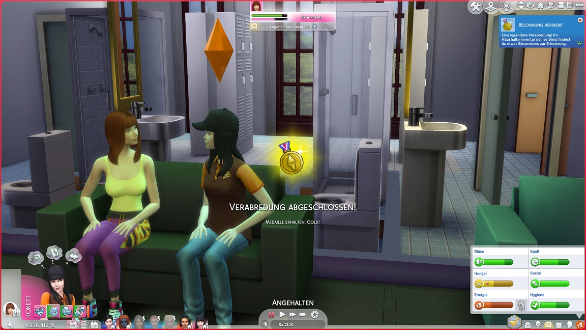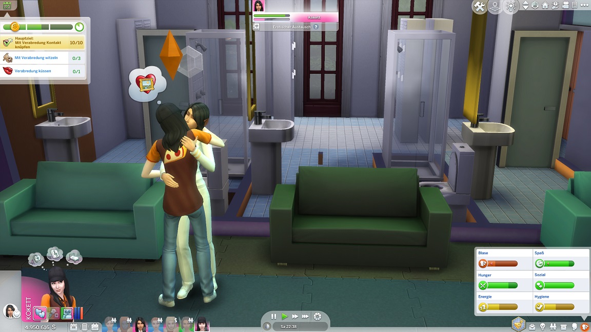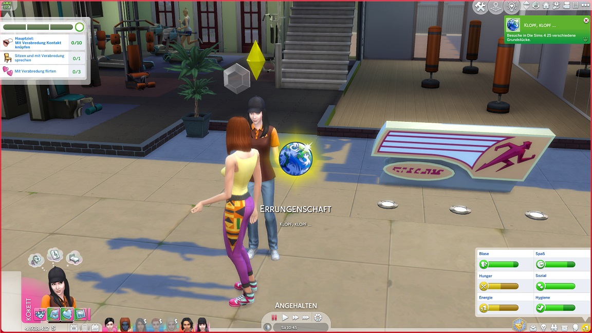 Nun benötigt sie noch drei Dates mit Gold. Für das erste wählt sie ein Fitnessstudio, was für ein Achievement sorgt.
