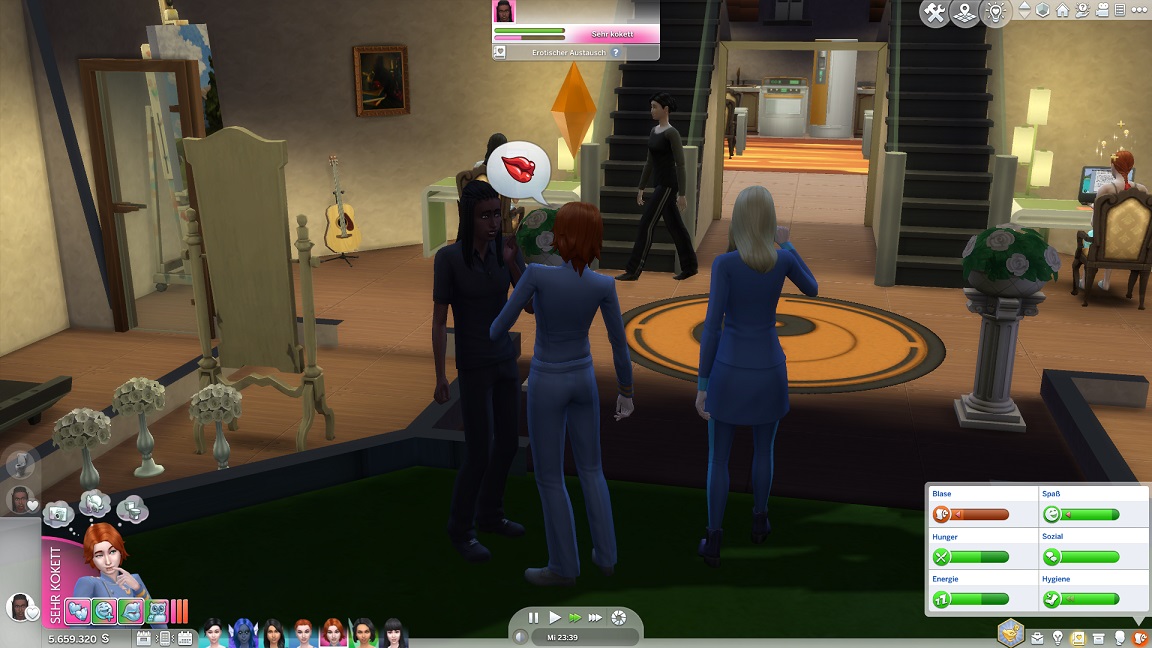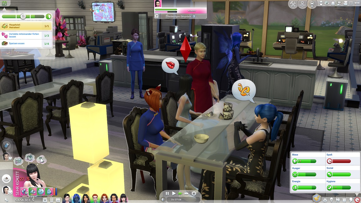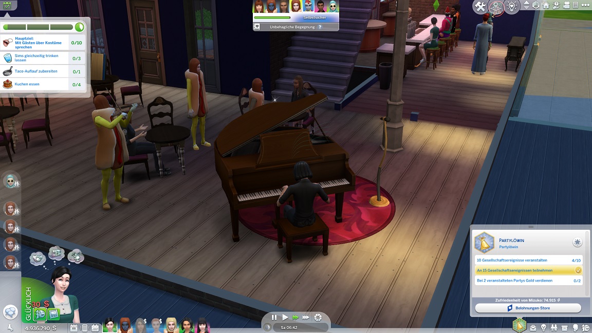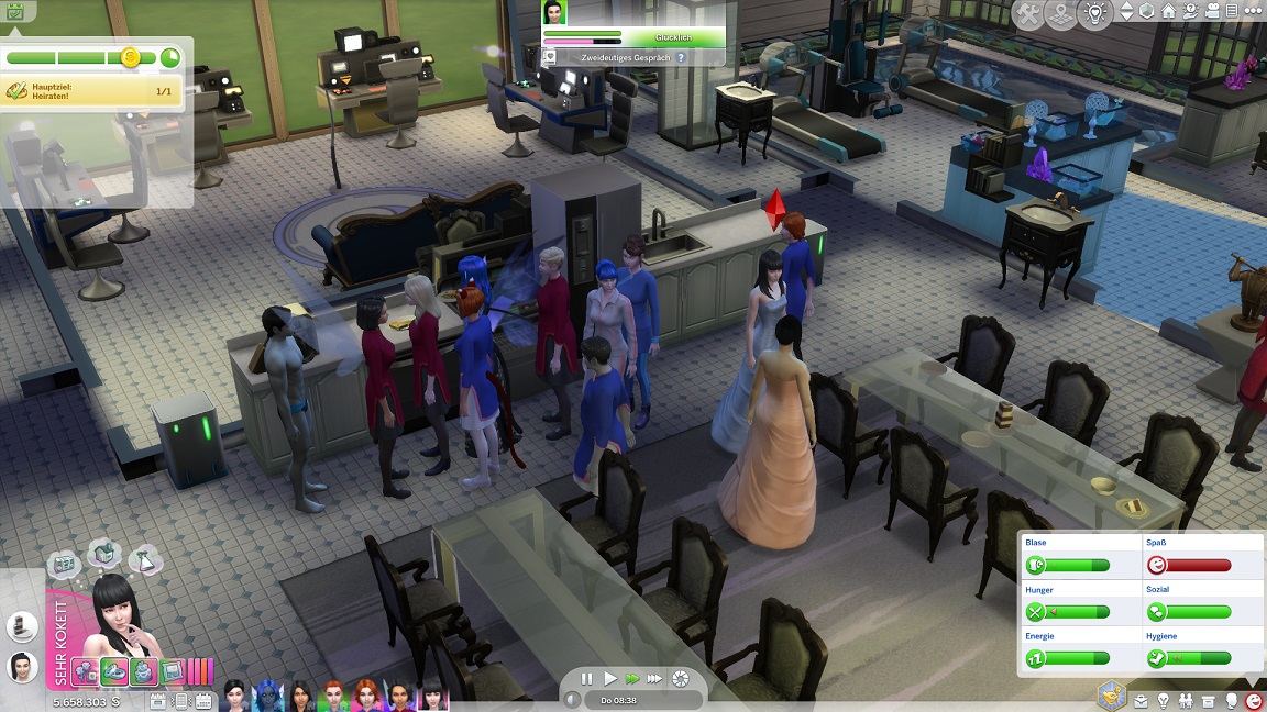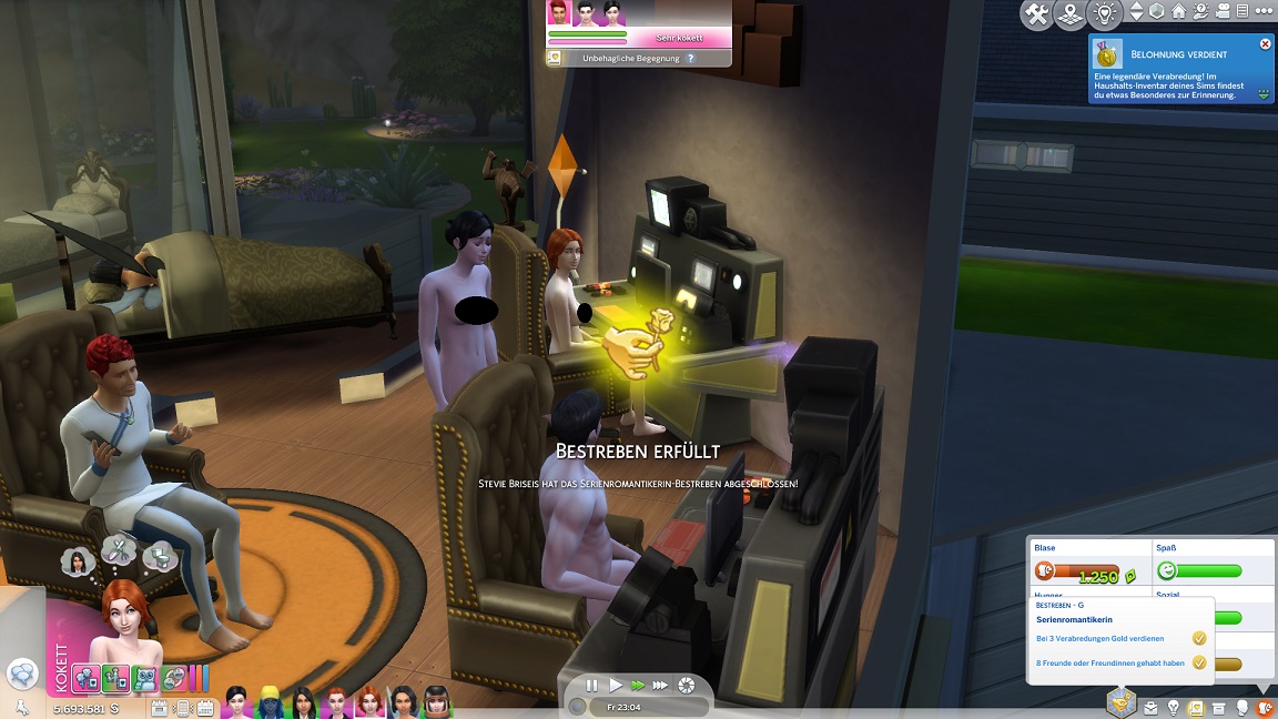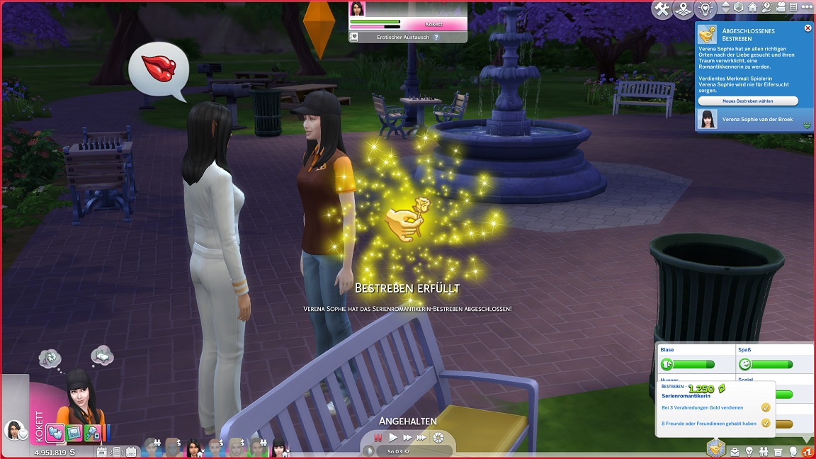 Nun benötigt sie noch drei Dates mit Gold. Für das erste wählt sie ein Fitnessstudio, was für ein Achievement sorgt.