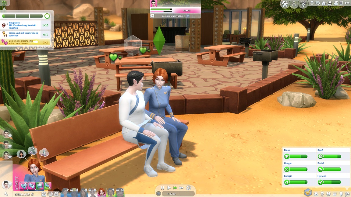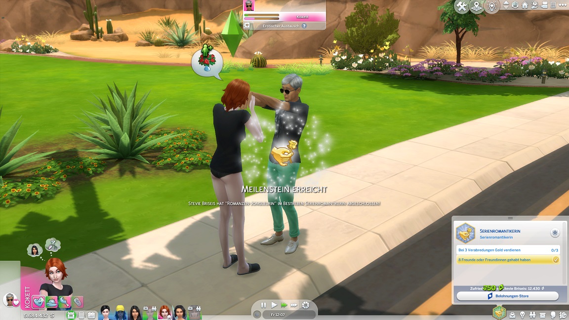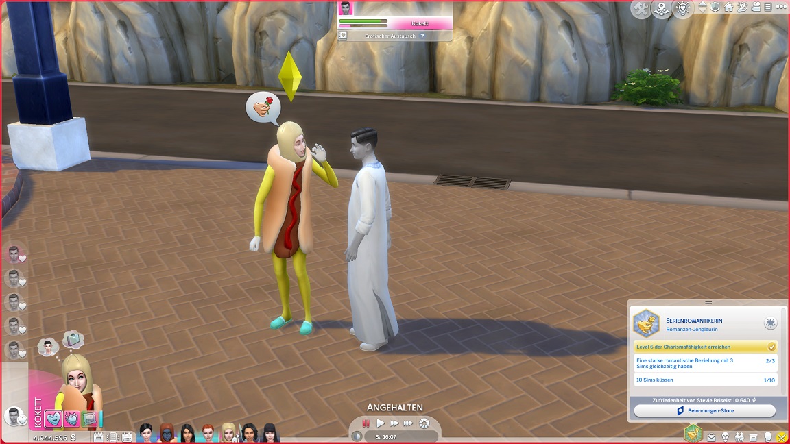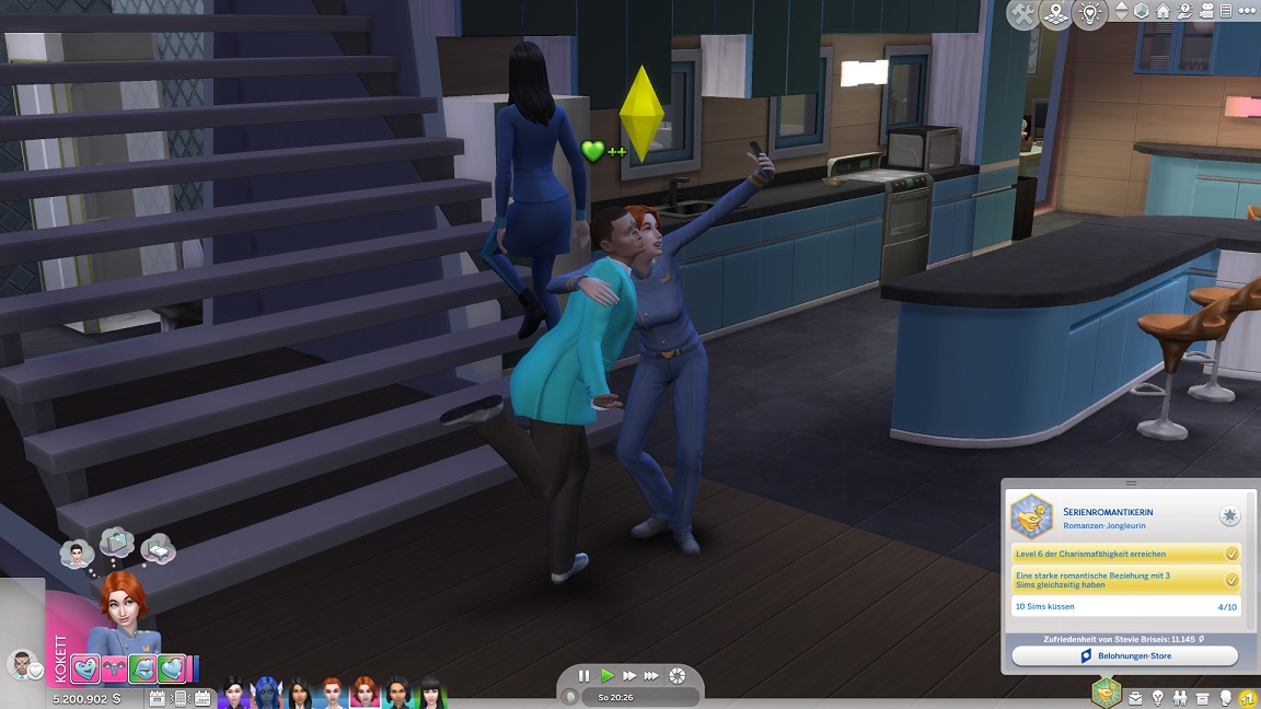 Stevie löst den letzten Kuss, indem sie einen Passanten abfängt und diesen bis zum Handkuss anreizt, was genügt. (Sie benötigte aber ehen zu den zehn Küssen eine Stufe später auch acht Freunde.)