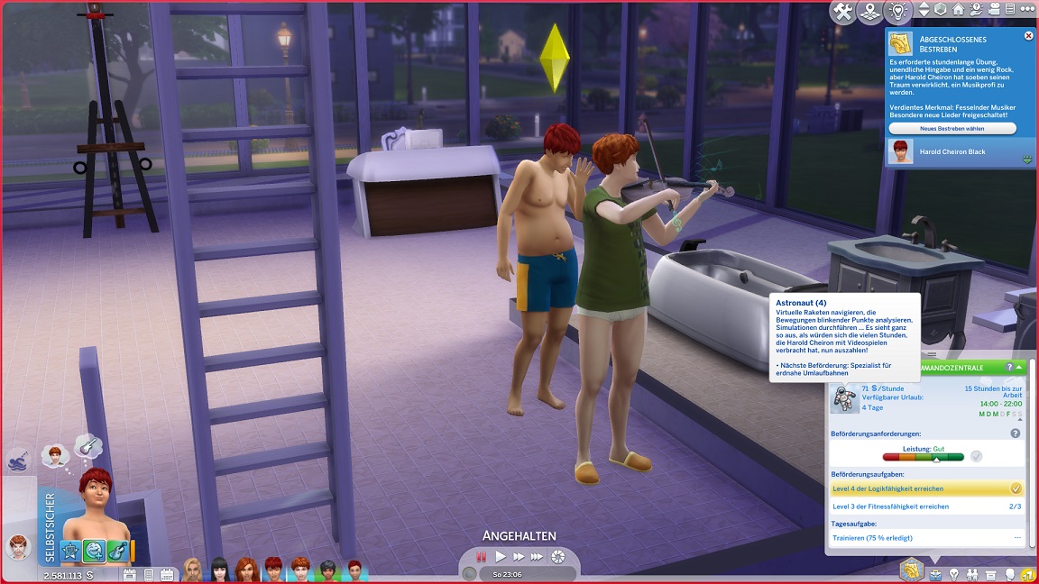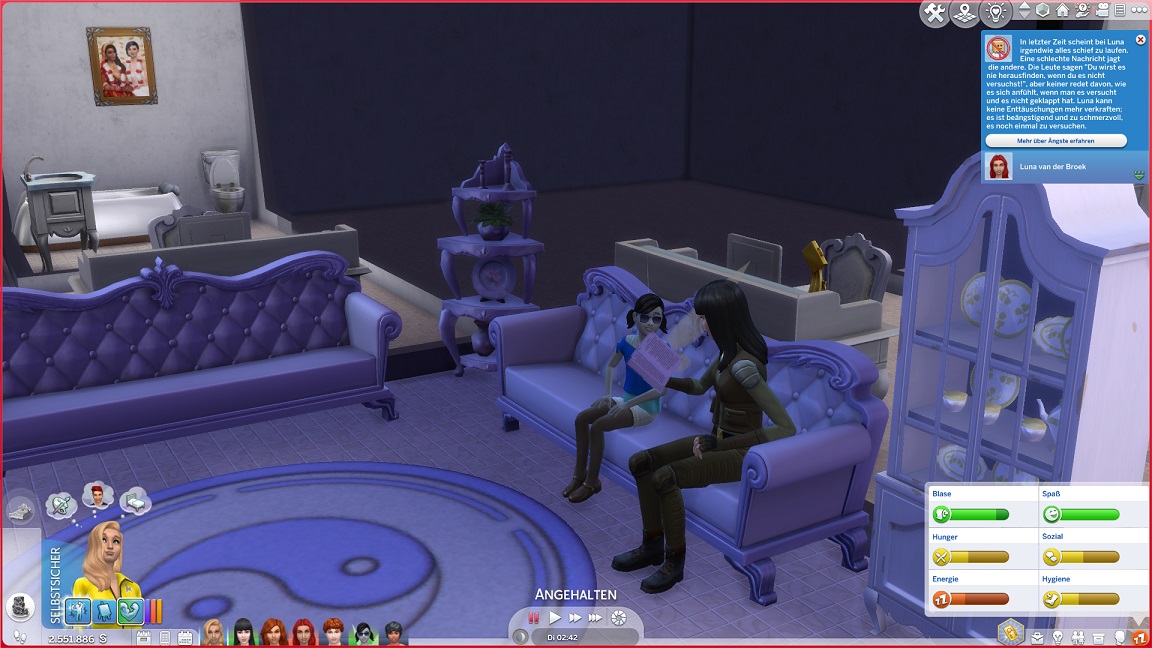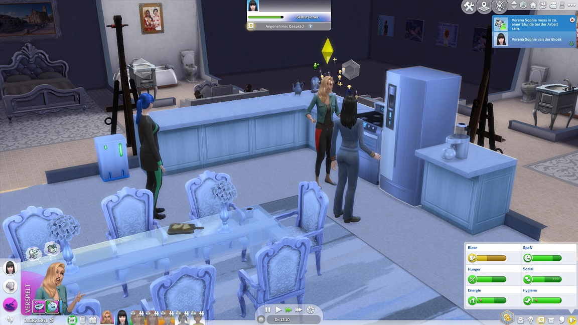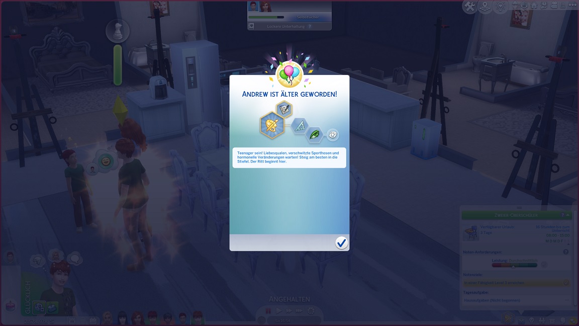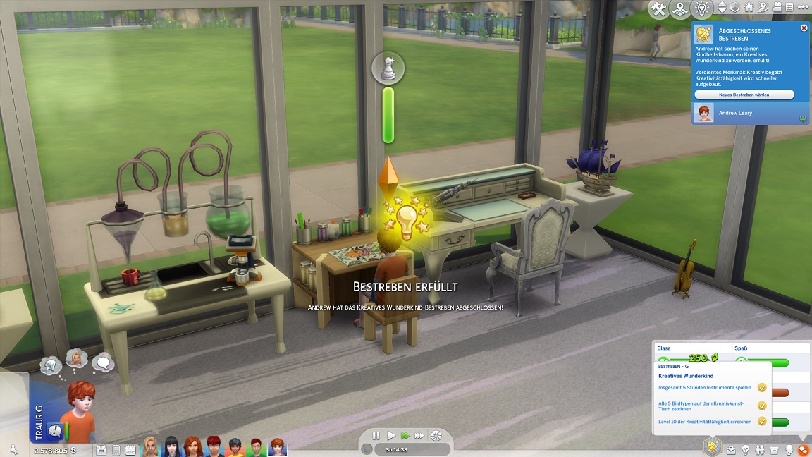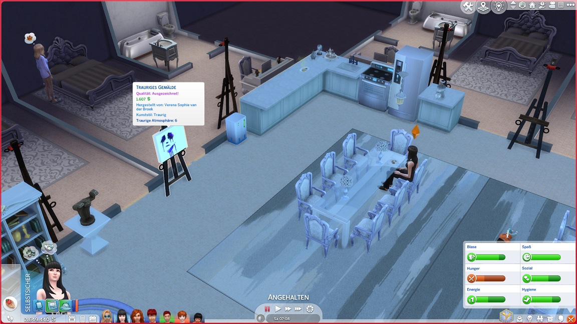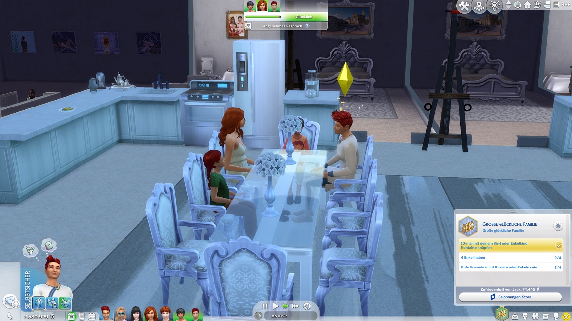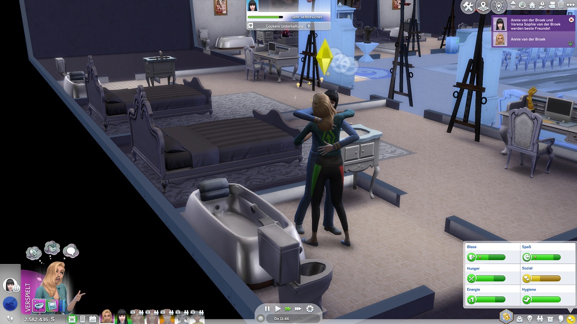 Andrew stellt fest, dass er die Heimwerkerei hasst, weswegen er die Aufgabe an Luna weitergibt. Verena dreht Däumchen und lässt sich von den Gedankenblasen dazu verleiten, wieder einmal zu musizieren. Jacks Gastspiel hatte Folgen, da er als Maler-Mäzen mit abgeschlossener Karriere Dinge freischaltete und nun endlich Leinwandstapel für die passende Stimmung sorgen können.