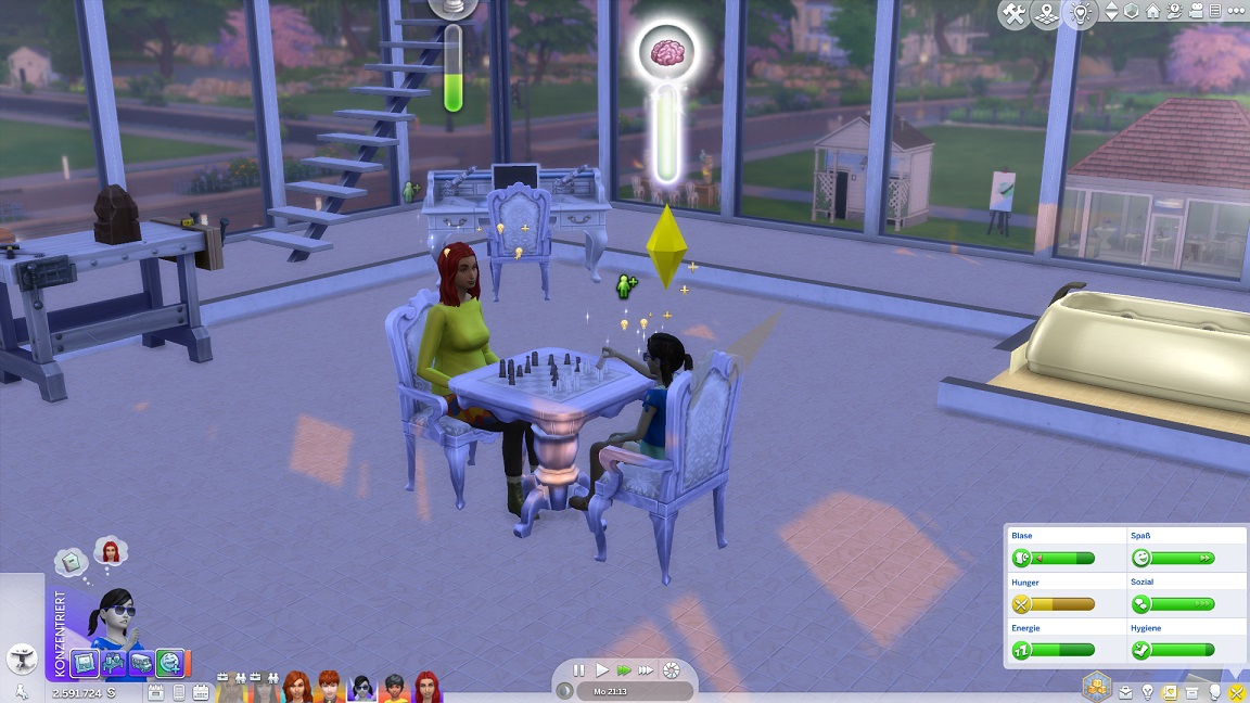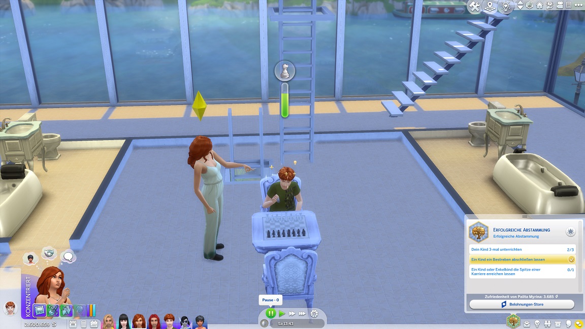 Julian stellt fest, dass er Videospiele mag. Palita absolviert die Trainingssessions mit ihrem Kind am Schachbrett.
