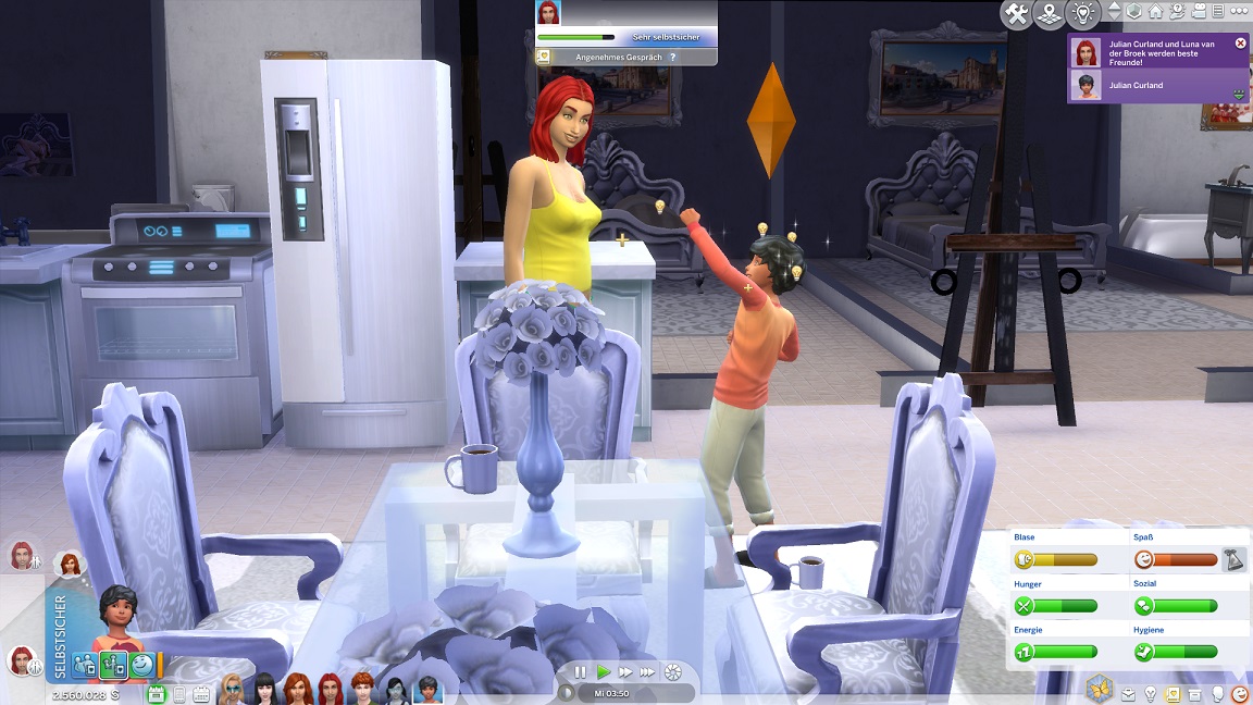 Dinge plätschern dahin. Der auf Kommunikation abzielende Julian gibt gerne den Spielpartner.