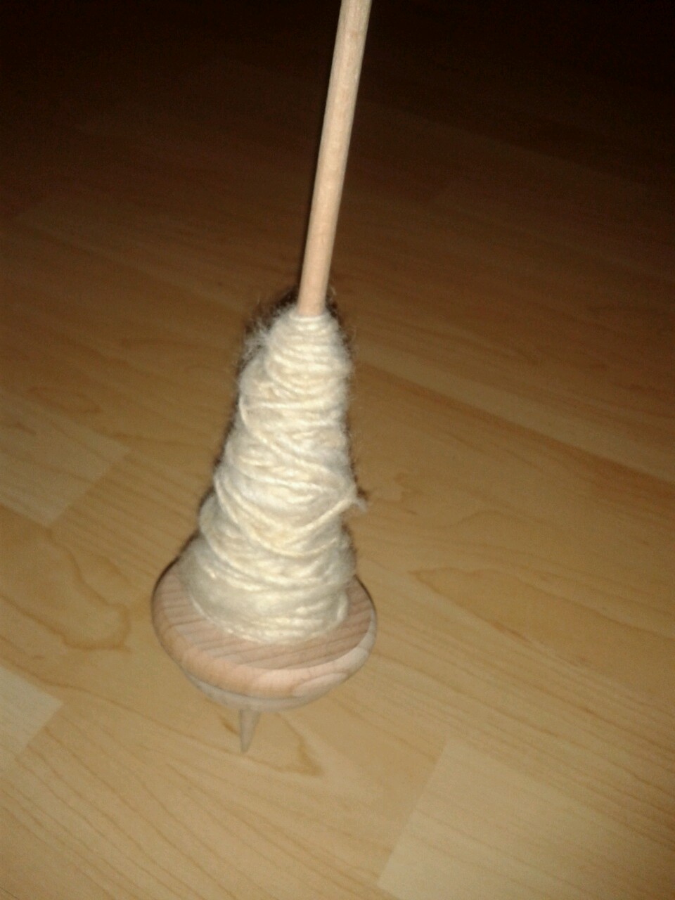 inzwischen dreht sich auch die neue spindel brav. ich hoffe, der faden wird brauchbar, aber ich bin guter dinge.