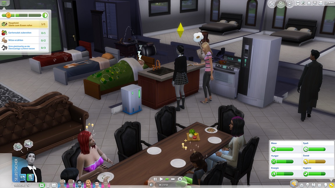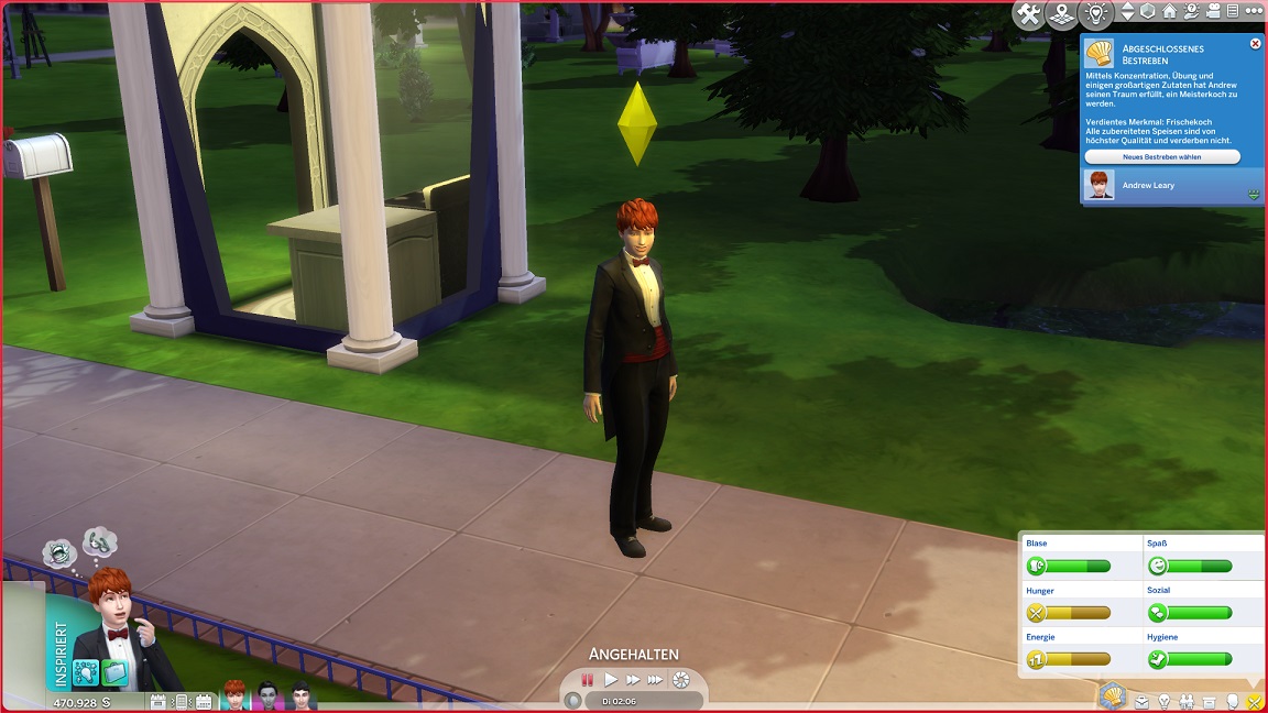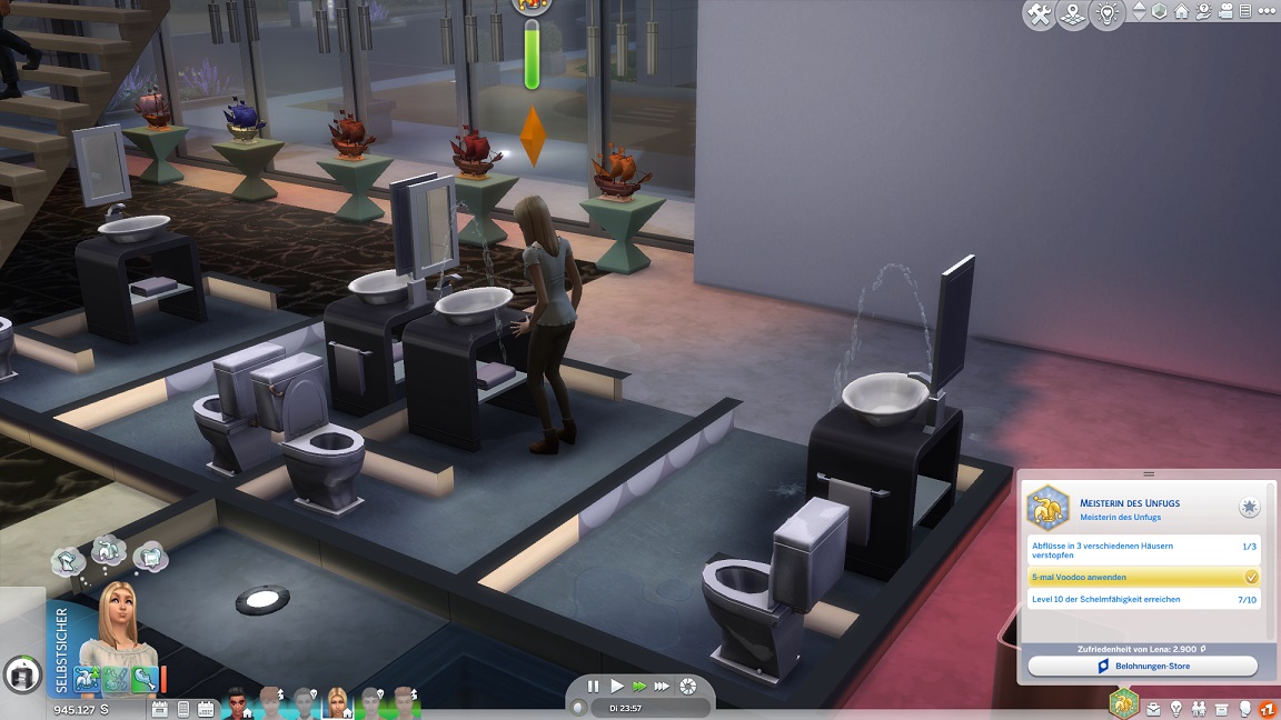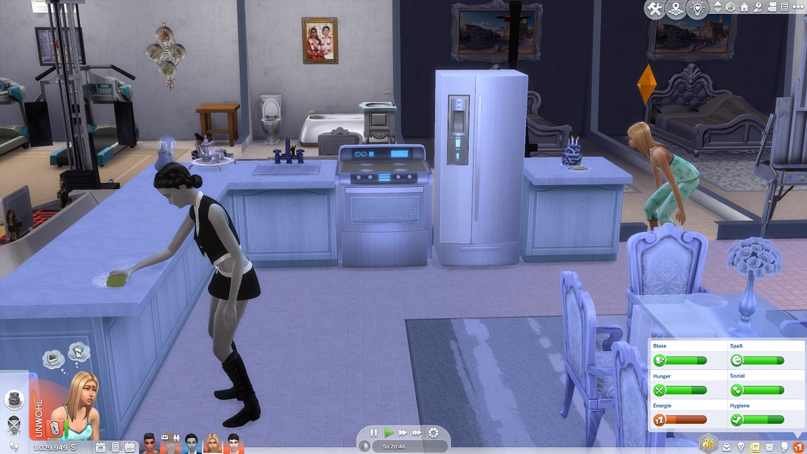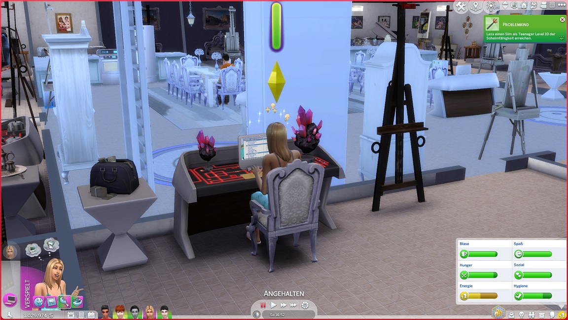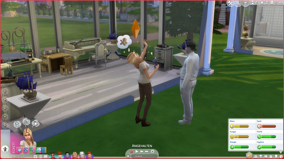 Da Andrew für seine Bestrebung wenigstens ein bisschen Charisma pumpen muss, entsteht nach dem Arbeits-, Kreativ- und dürftigen Sportraum auch einer für den Rest. Die aus anderen Räumen herverschobenen Bilder erlauben, die Stimmung je nach Wunsch auf "selbstbewusst", "verspielt" oder "kokett" zu schalten.