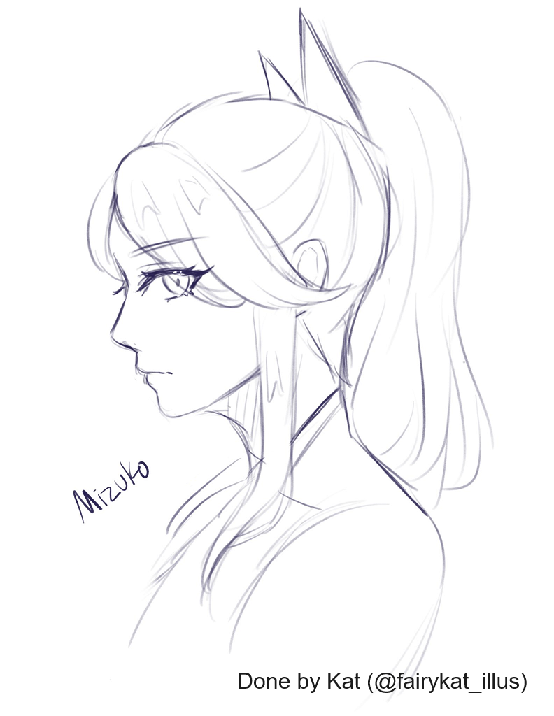 Tatsächlich bereitete ich schon ein großes Abschiedsbild vor, um das Kapitel dieser Story, Mizukos und der Axanar zu schließen, doch die Plotbunnies legten mir bereits eine Idee für eine neue Folge nahe, sodass sich das definitive Ende noch ein wenig aufschiebt. Aber ich habe noch ein anderes Mizuko-Bild für euch, das Kat einmal anfertigte und das ich sehr hübsch finde.