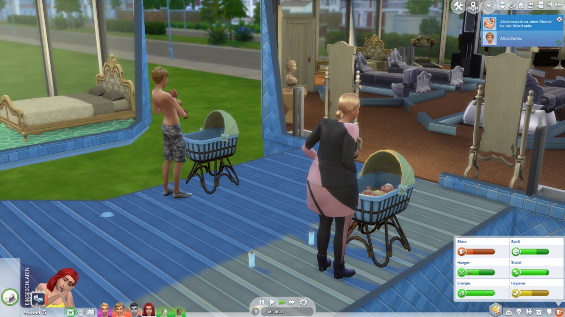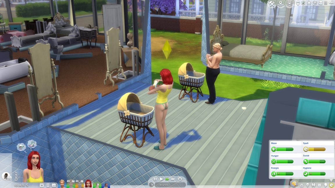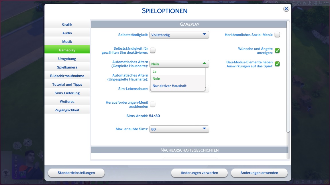 * Im passiven Haushalt können per Nachbarschaften Sims sterben und Babys geboren werden.
