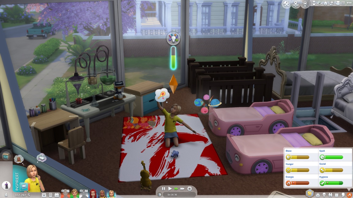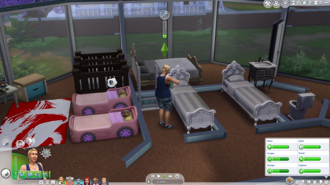 Ein Teppich wandert ins Kinderzimmer. Lexi beginnt damit, die Betten aufzurüsten.