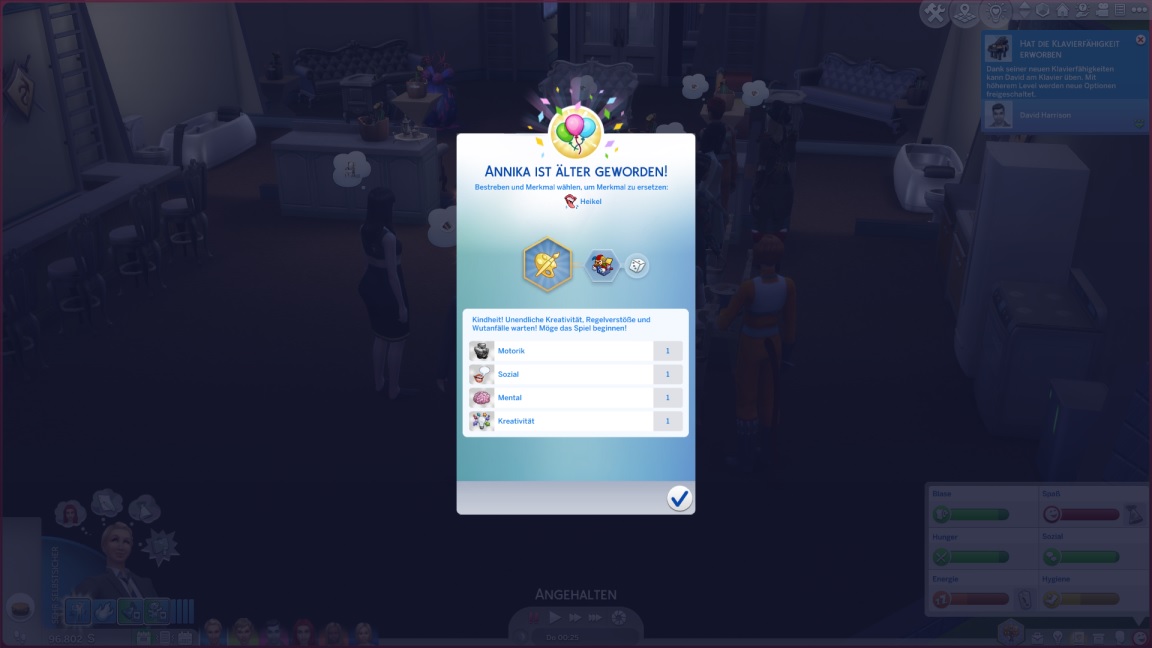 Annika bleibt ohne Bonus-Merkmal und mutiert zu "heikel". Annie verführt David.