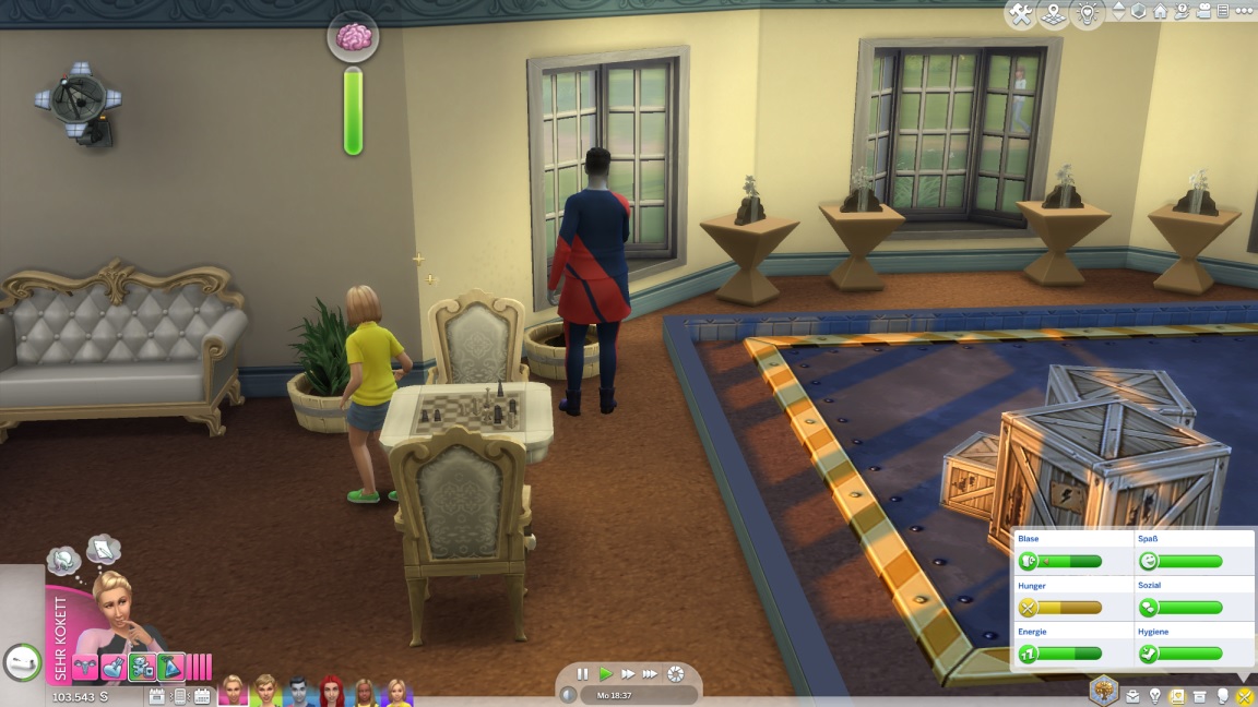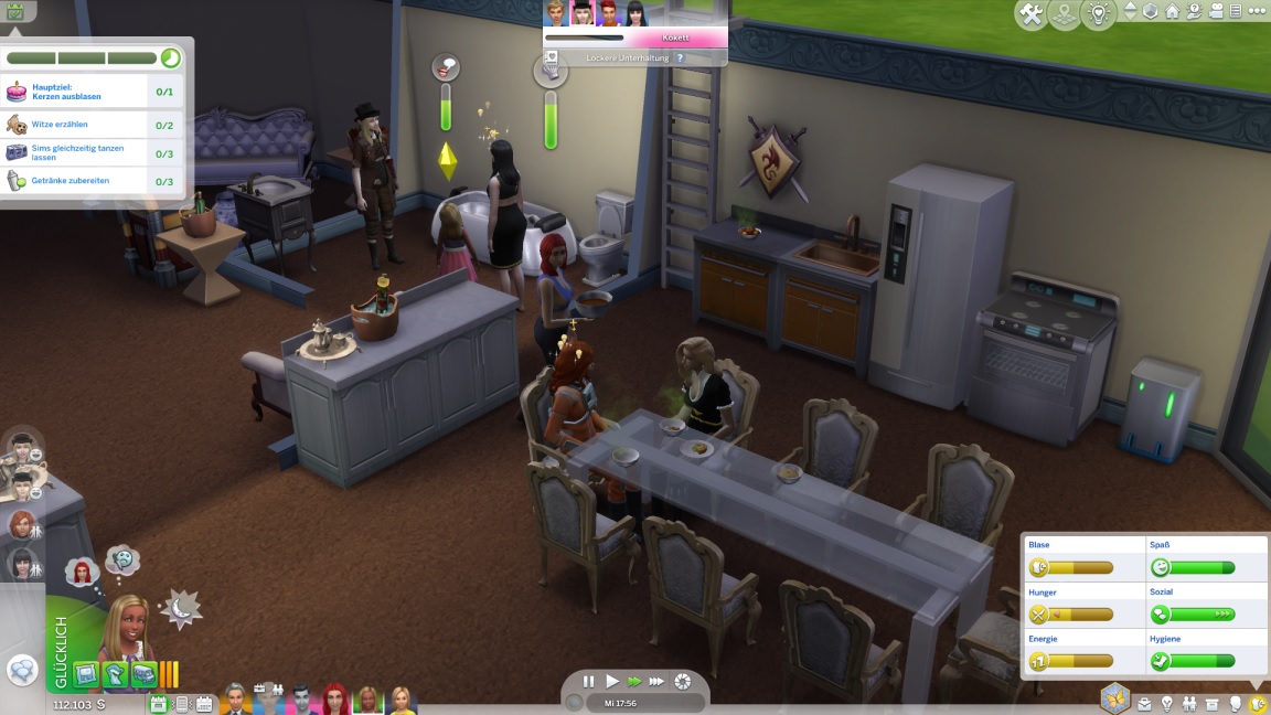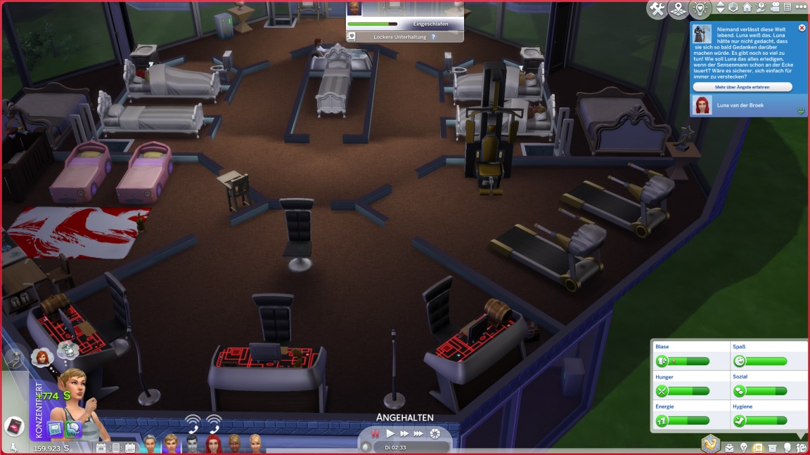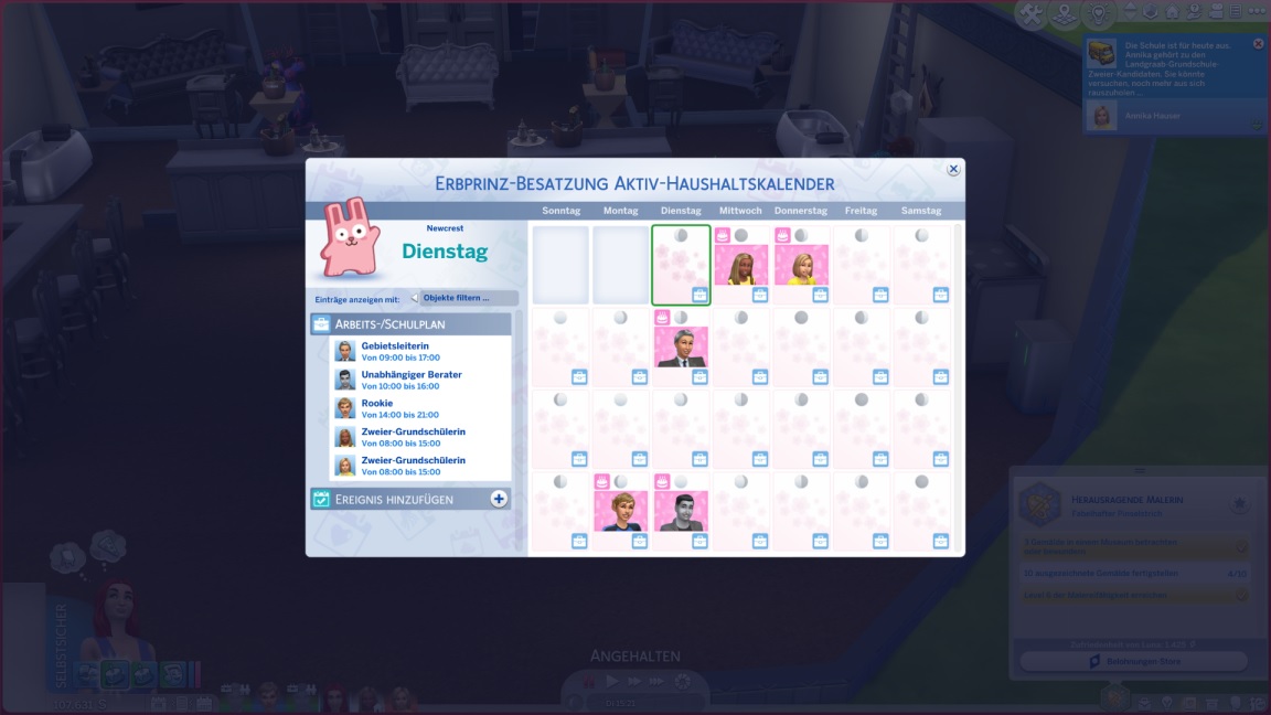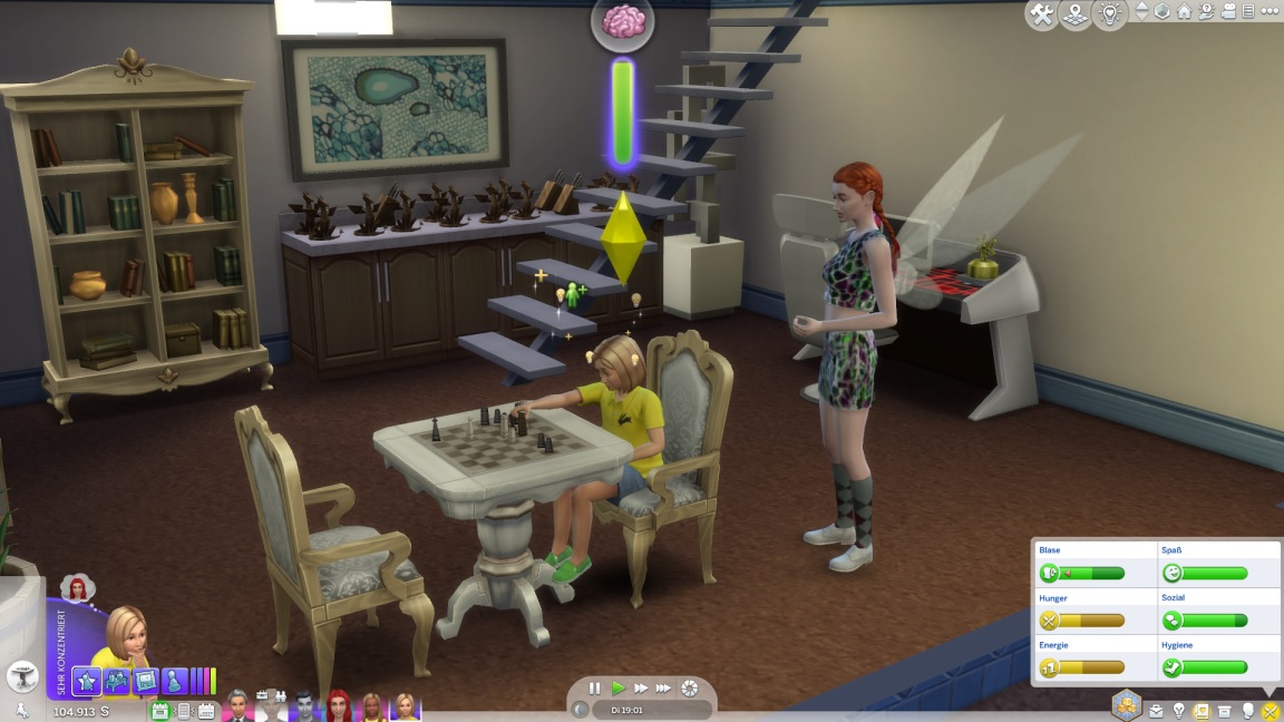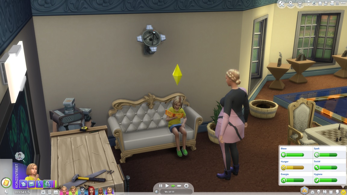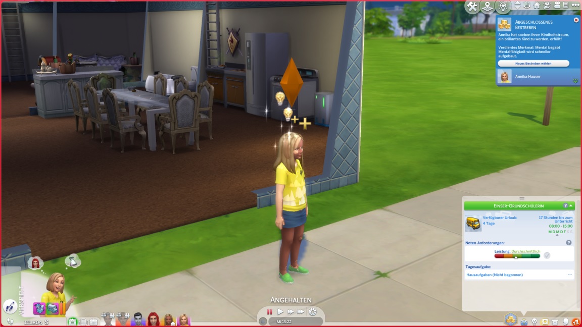 Annika muss für ihr Bestreben zweimal konzentriert Hausaufgaben erledigen, Lexi muss ihrem Kind bei ihren Hausaufgaben helfen. Diesmal fehlt im Spielzimmer der Platz für einen Tisch, sodass sie auf den Maschinenraum (ebenfalls ohne Platz für einen weiteren Tisch) ausweicht.