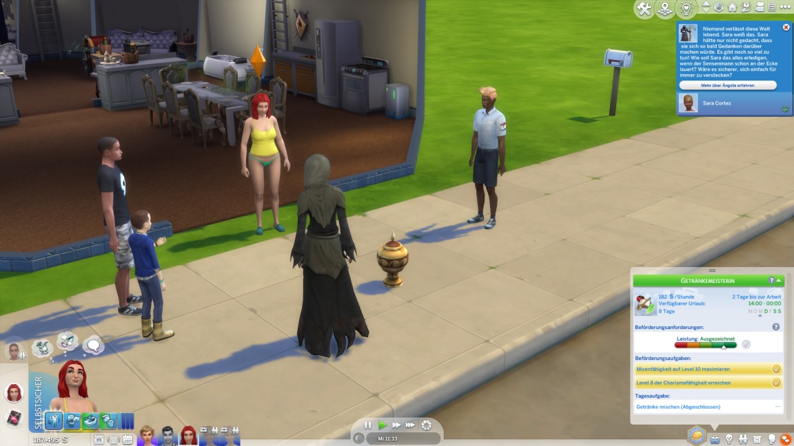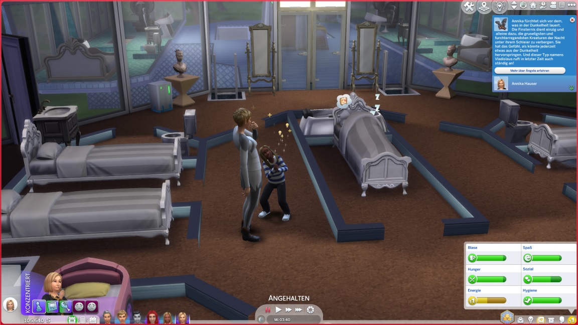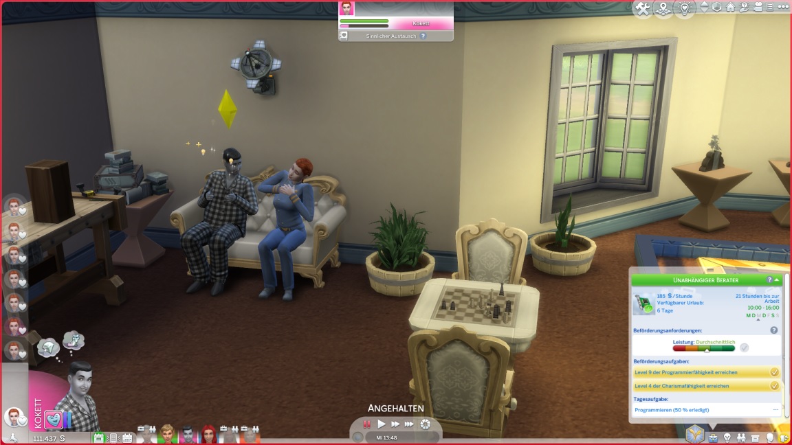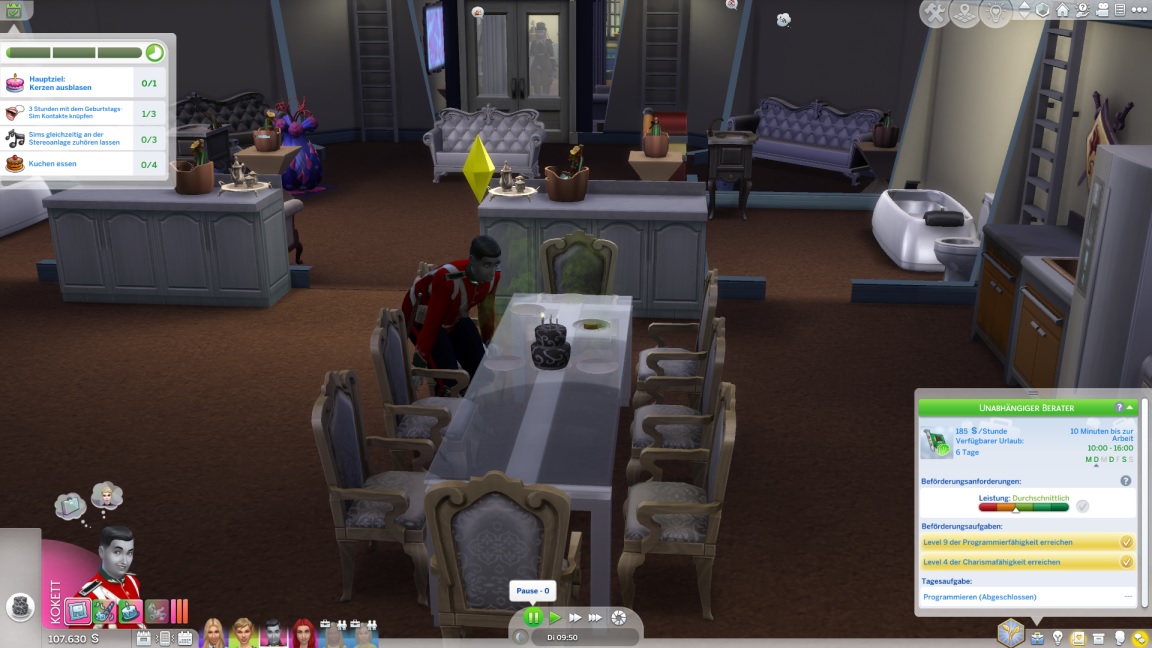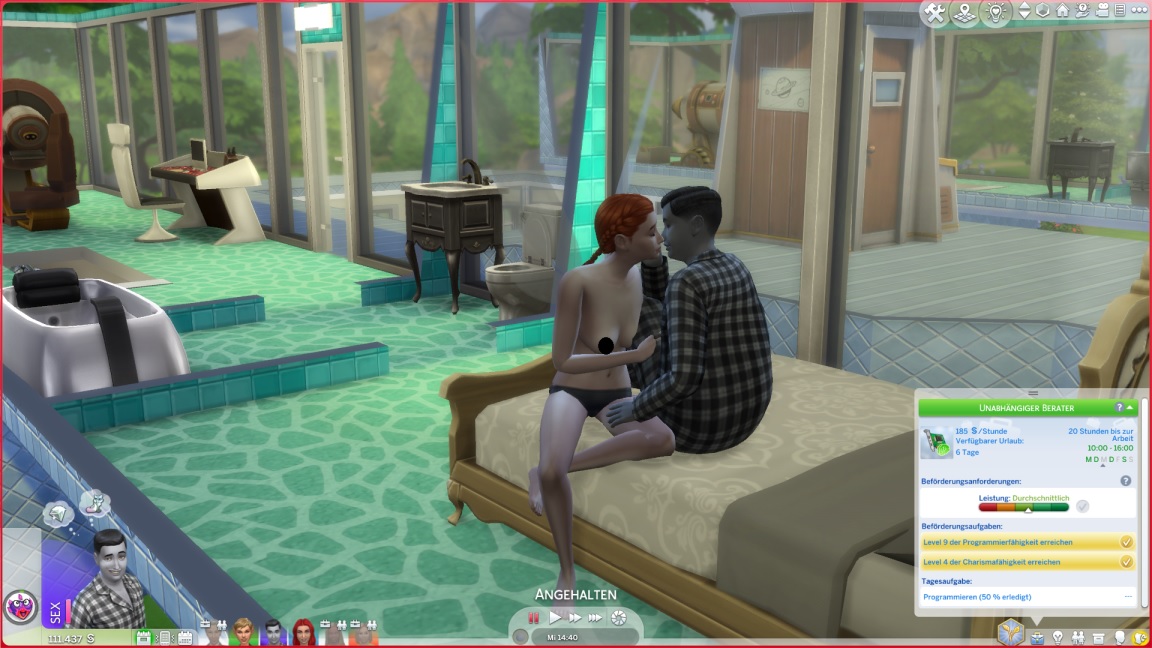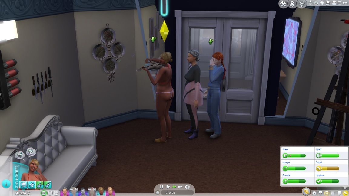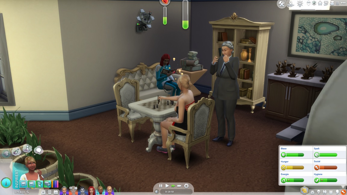 Annika muss für ihr Bestreben zweimal konzentriert Hausaufgaben erledigen, Lexi muss ihrem Kind bei ihren Hausaufgaben helfen. Diesmal fehlt im Spielzimmer der Platz für einen Tisch, sodass sie auf den Maschinenraum (ebenfalls ohne Platz für einen weiteren Tisch) ausweicht.