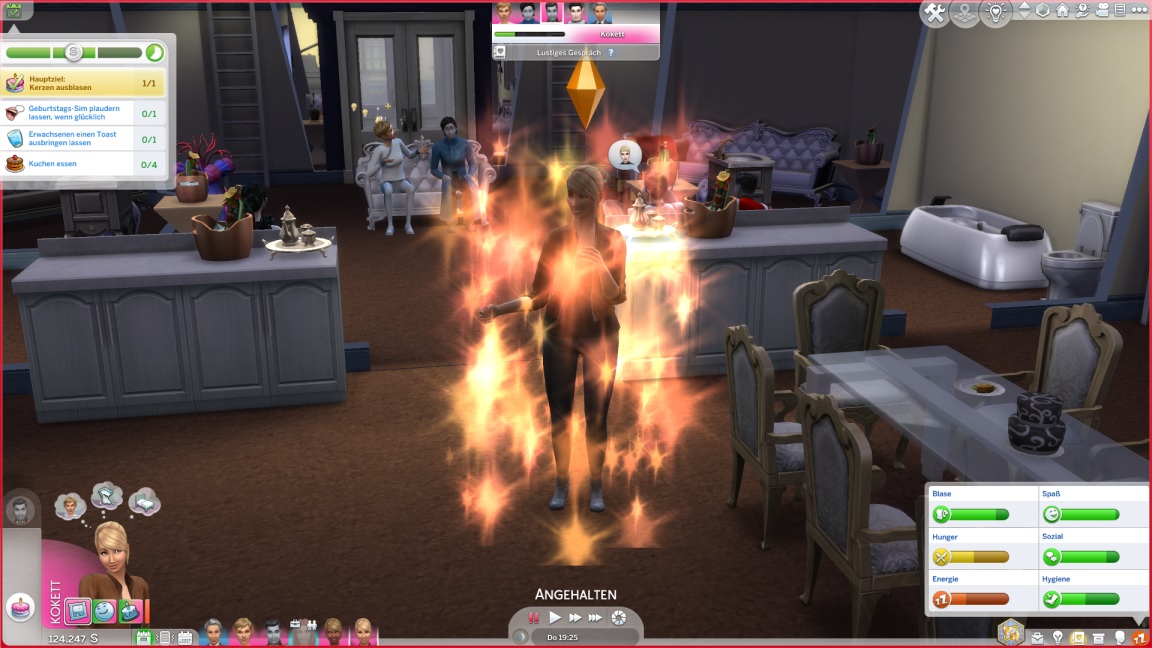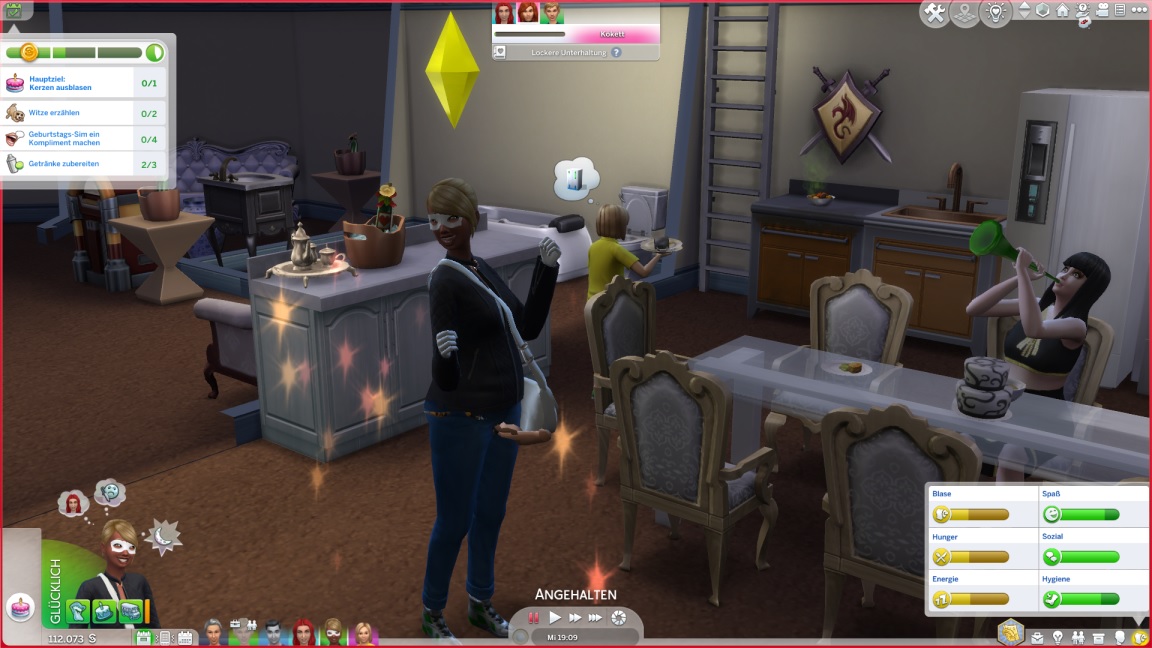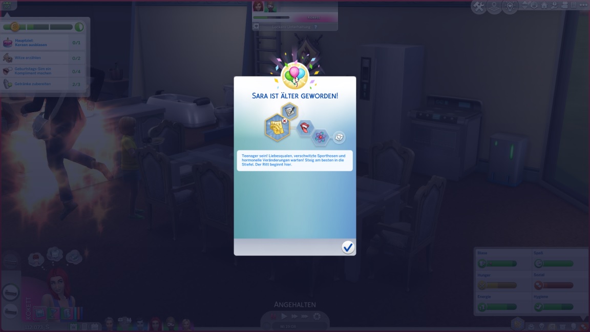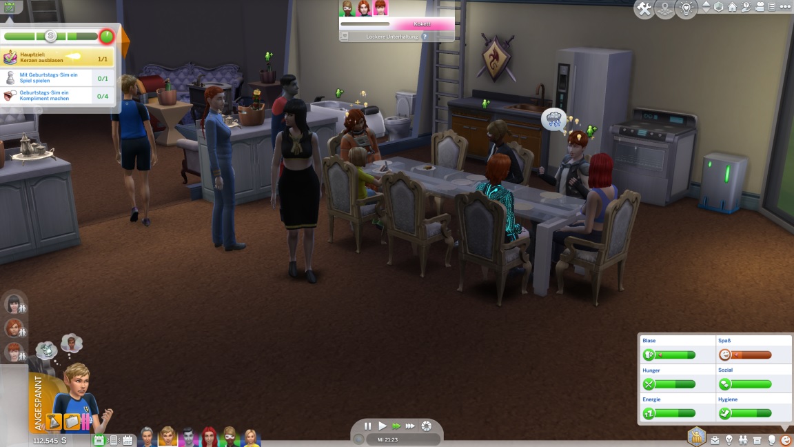 Am nächsten Tag folgt der Geburtstag der übrigen drei Erwachsenen. Die Gäste bestehen aus der Erbprinz-Mannschaft zusammen mit reichlich Axanar. David pustet, bevor er zur Arbeit aufbricht.