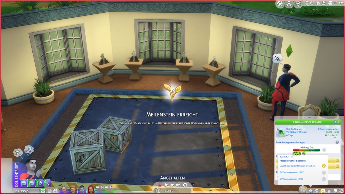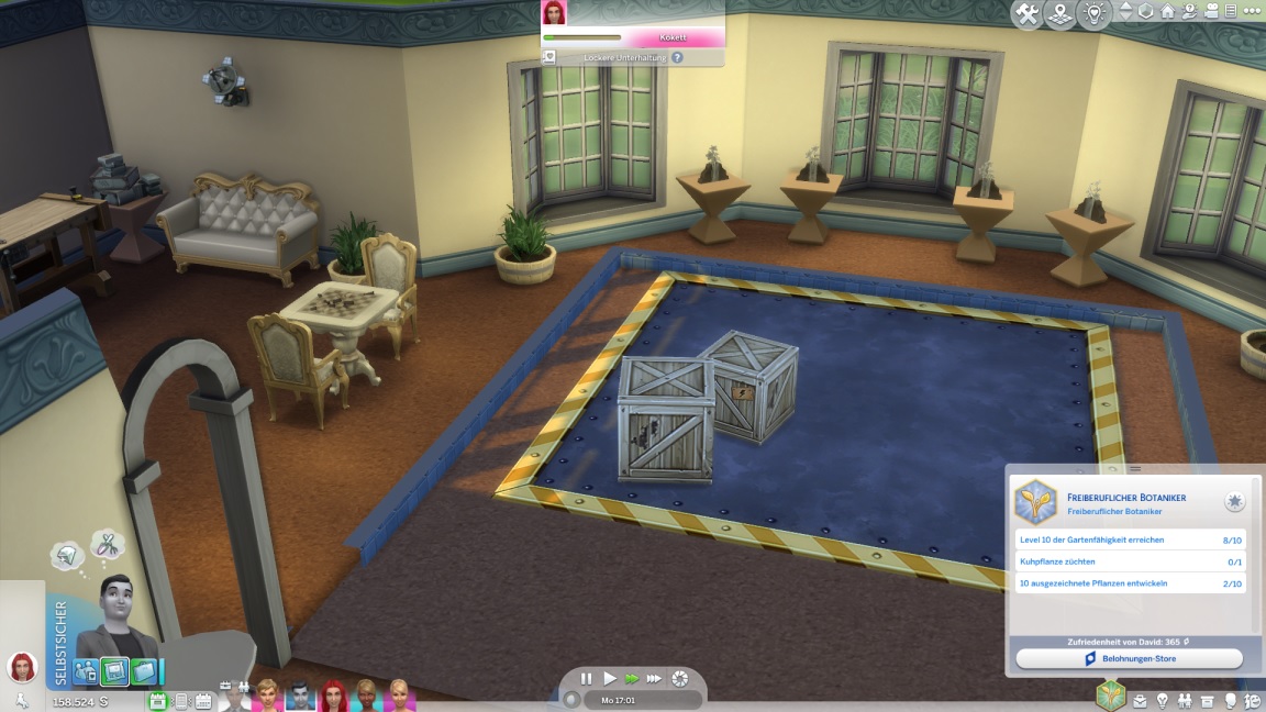 David stellt fest, dass das Spiel seine Formulierung ernst meint und er tatsächlich fünf unterschiedliche Pflanzen entwickeln muss. So entstehen Orchideen in zwei weiteren Töpfen.