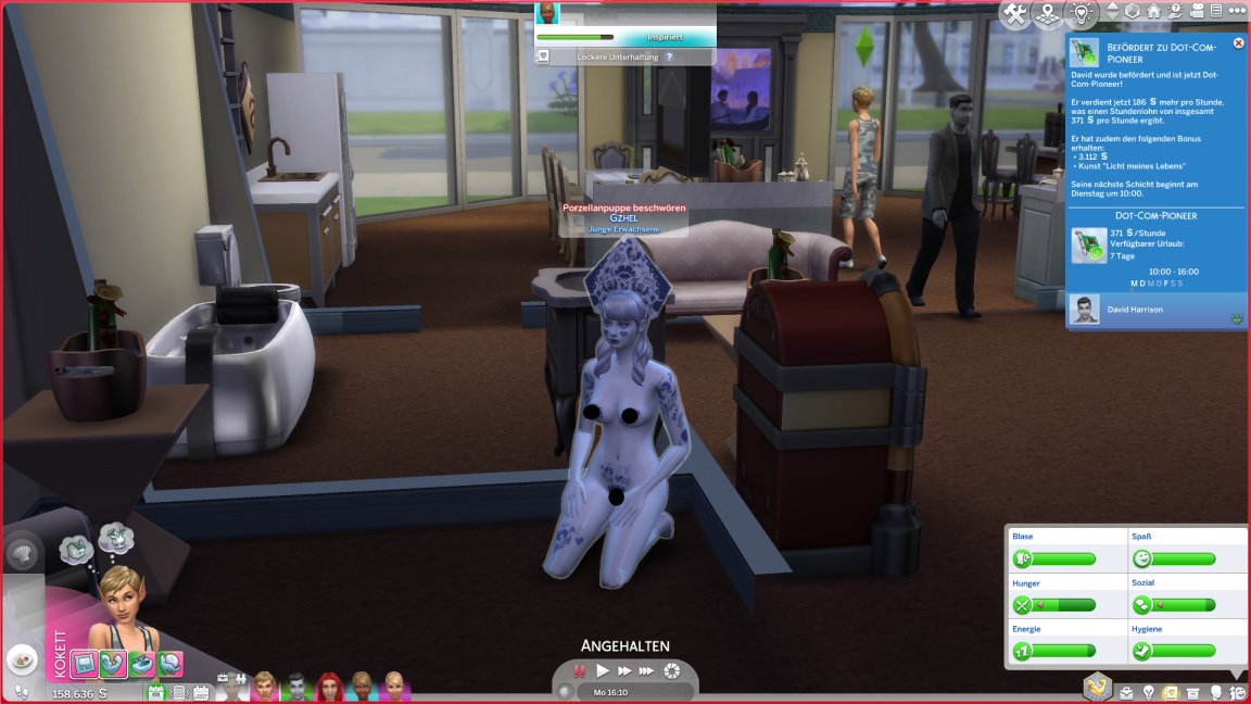 David erhielt mit der Beförderung ein Landschaftsbild. Luna nutzt auch direkt dessen Vase.