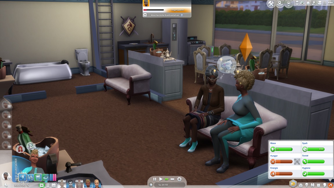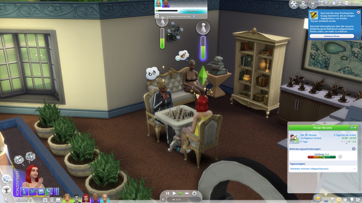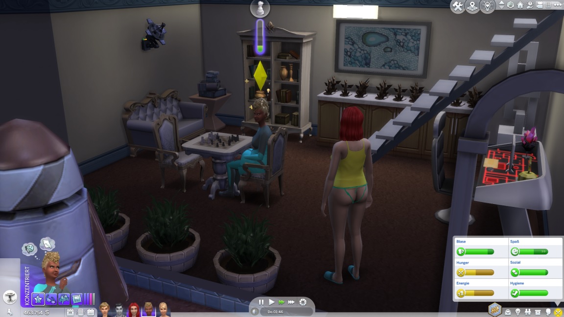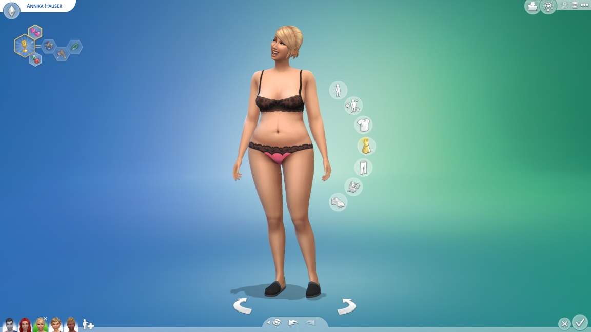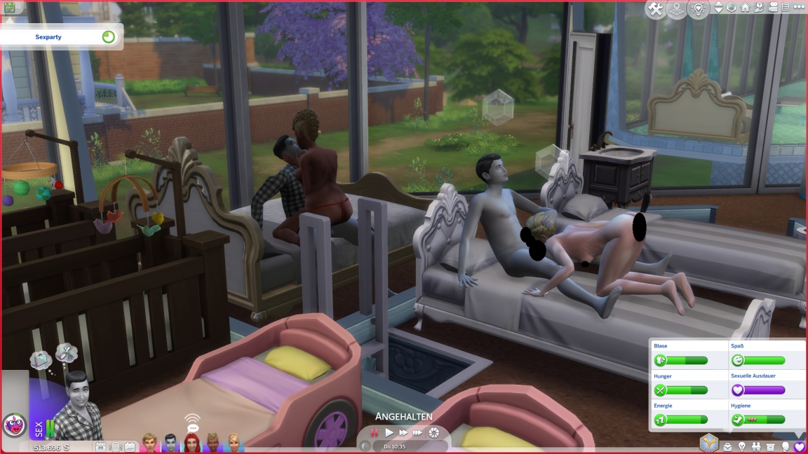 Annika – Spinnerin/Vielfraß/Eifersüchtig, Malerei, Geige, Fitness und Videospiele mögend – erweist sich als lesbisch mit Experimentierbereitschaft.