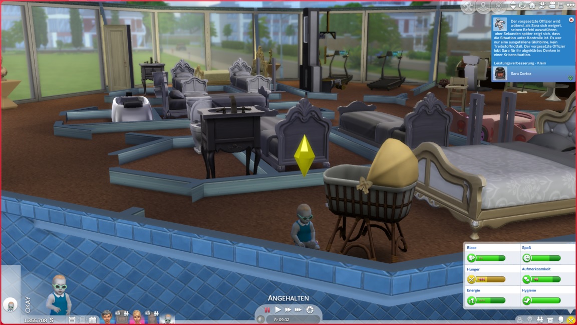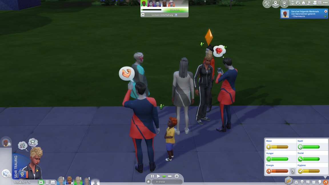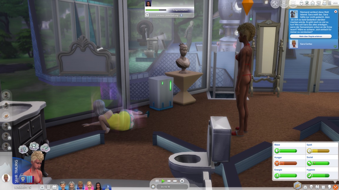 Sara möchte per Denkblasen ein Kind bekommen und hat sonst nichts Besseres zu tun, weswegen sie sich direkt auf den Neuankömmling stürzt.