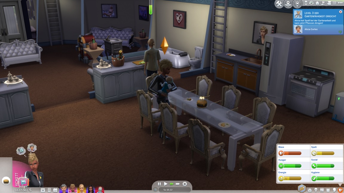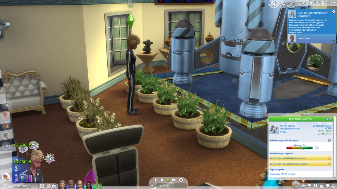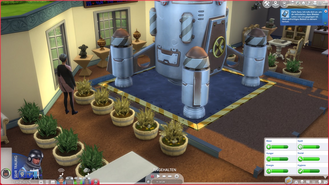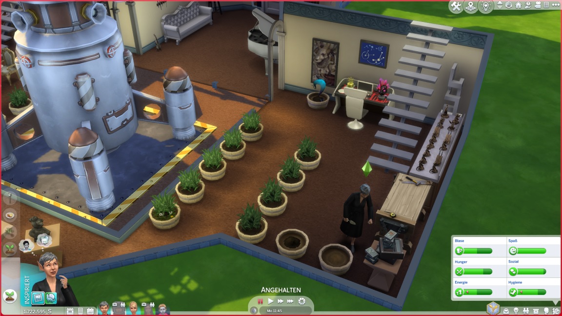 Alicia stellt fest, dass sie Gartenarbeit mag, und entfernt eine der Bänke des Maschinenraums, um Raum für Pflanzen zu schaffen.