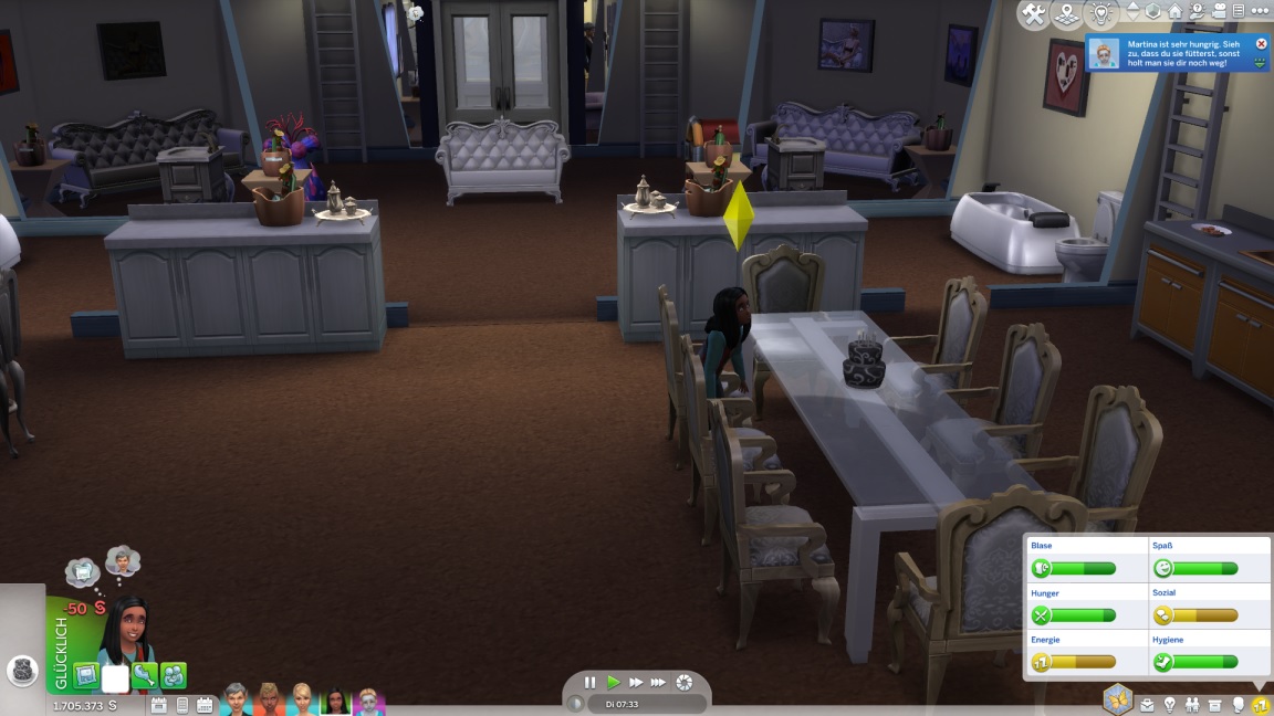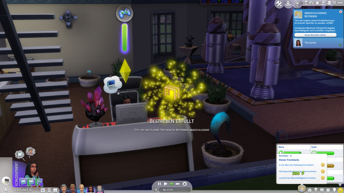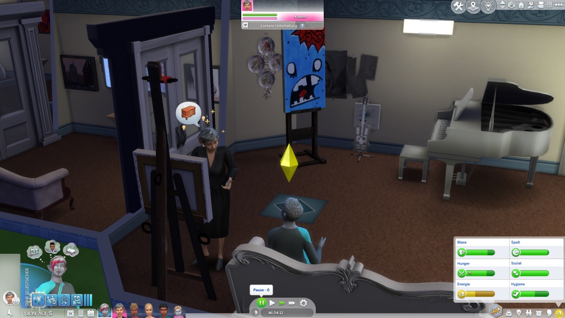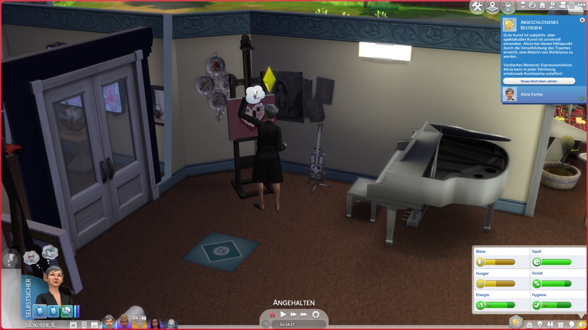 Während er sich nun hinter den Computer klemmt, gelingt Alicia das letzte benötigte Meisterwerk.