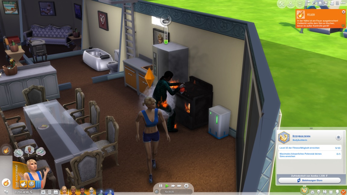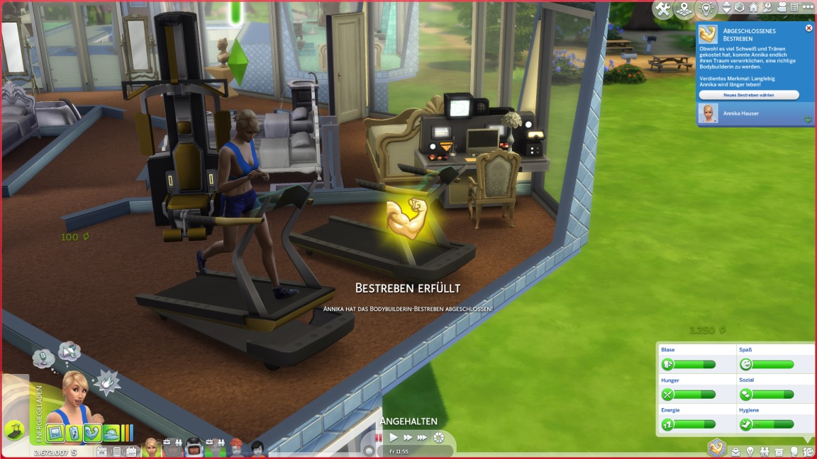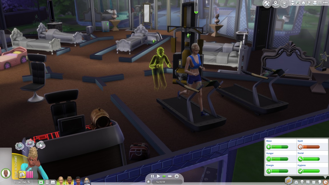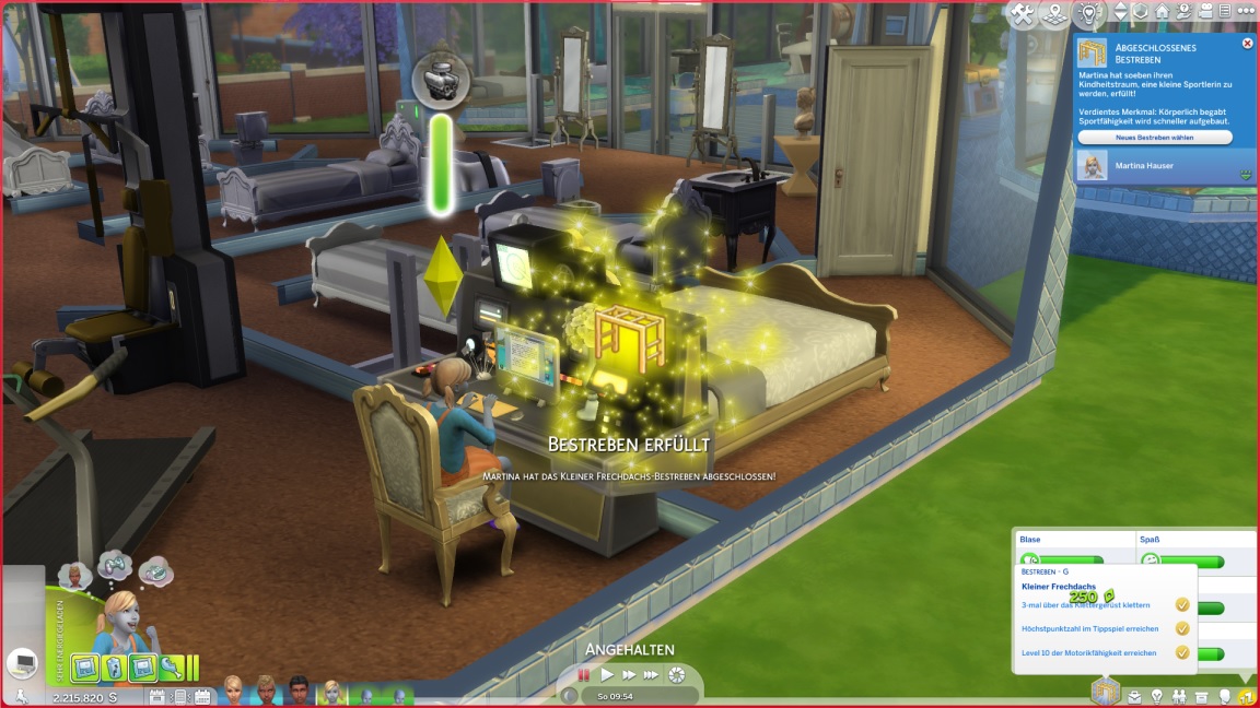 Mit dieser Erkenntnis bittet sie Annika um einen Tippübungs-Arbeitsplatz im Fitnessraum, den diese gewährt und (abgesehen vom Laptop) mit Gegenständen aus dem Fundus einrichtet.