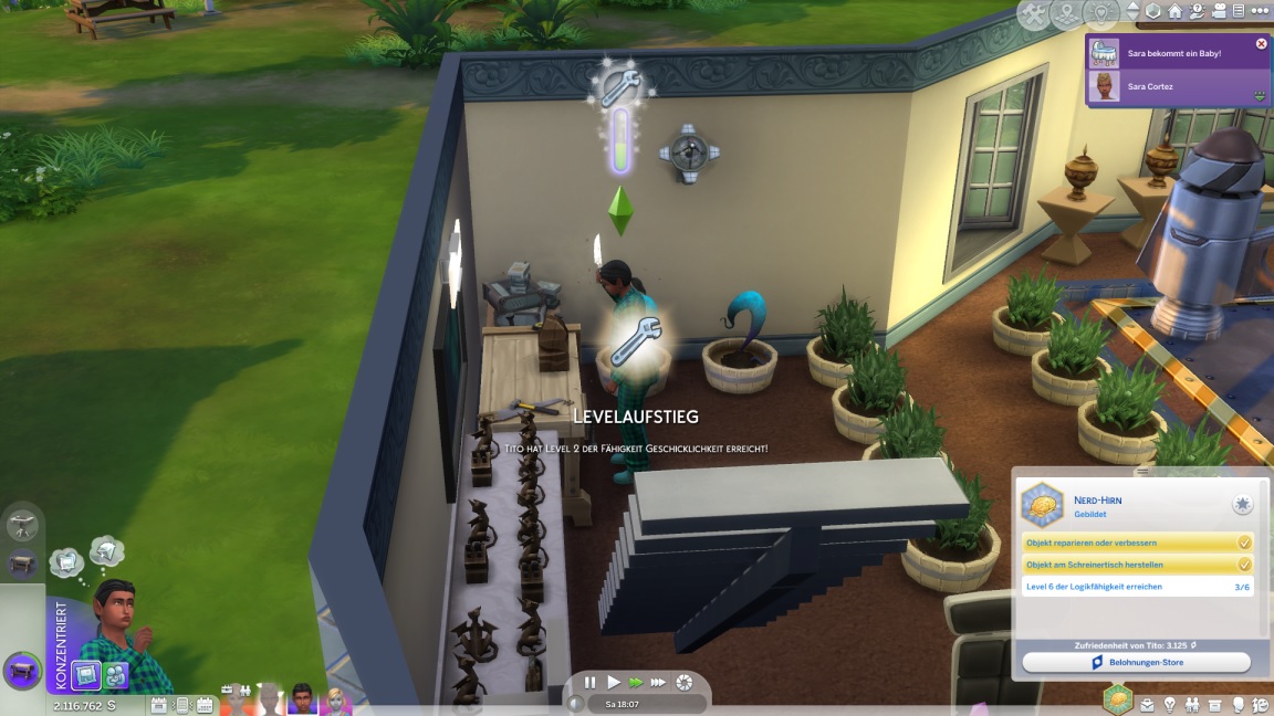 Sara unternimmt als Berufsaufgaben Abstecher ins All, wobei sie die Meteorstein-Sammlung (erneut) abschließt. Bei der Waschbeckenreparatur stellt sie fest, dass sie Geschicklichkeit mag. Die nur noch auf Notenfortschritt wartende Miranda stellt fest, dass auch Kinder Gärtneraufgaben übernehmen können, allerdings in eingeschränkter Form.