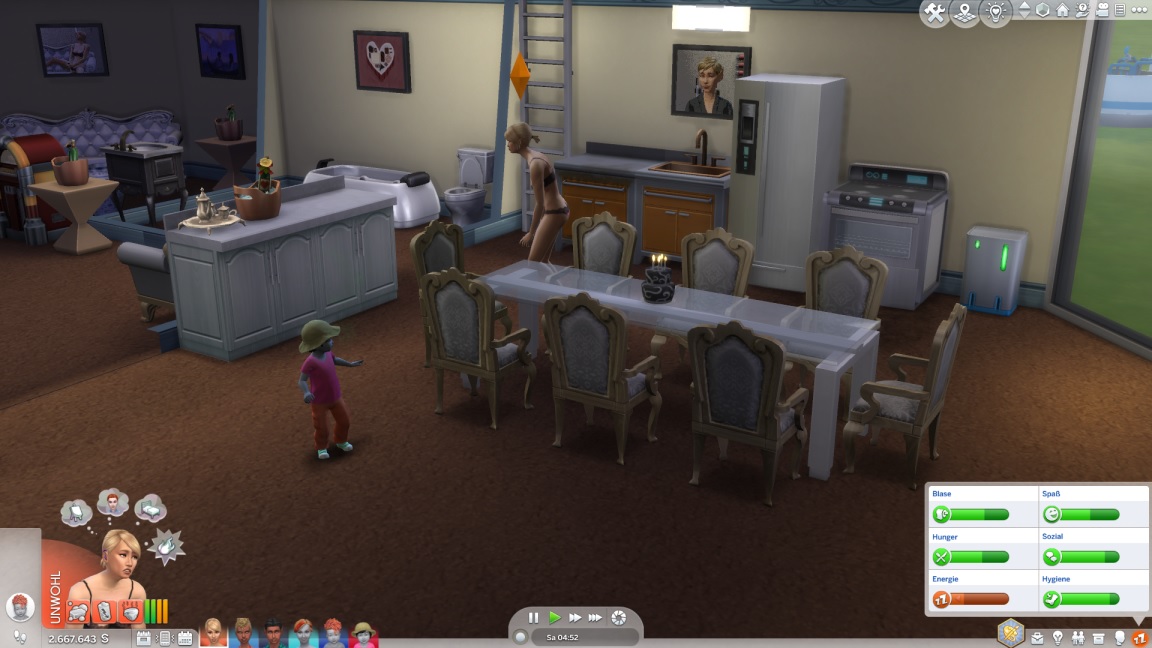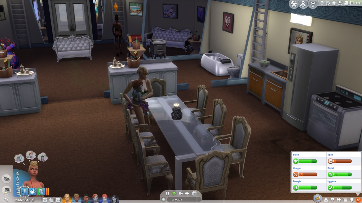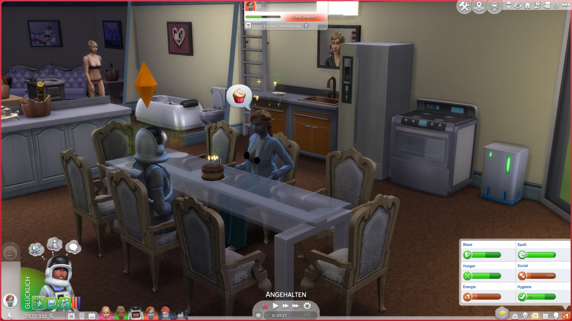 Annika und Tina pumpen kokette Bilder und heben die Meisterwerke auf. Da die Ästhetik kein Platz in der Messe für diese lässt, pflastern sie den hinteren Bereich damit voll und sorgen für die am Erotischsten aufgeladenen Badezimmer, die je ein Raumschiff besaß.